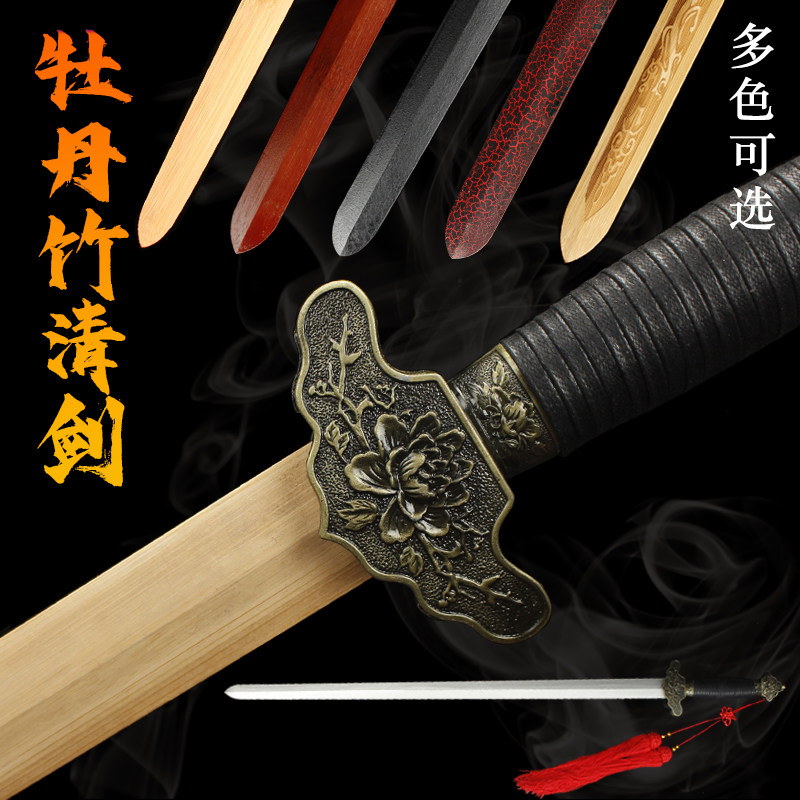 📚 牡丹竹清剑木质宝剑汉剑明太极剑古风武侠汉服佩刀表演带鞘未开刃