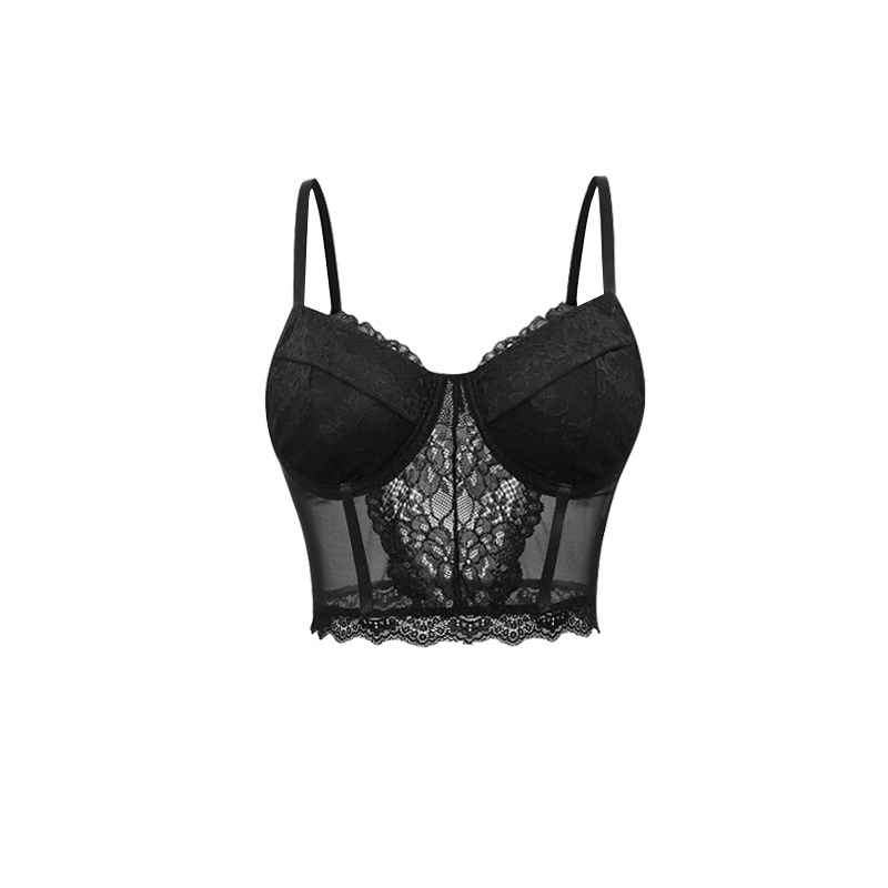 📚 黑色纯欲风性感蕾丝吊带背心女夏季欧美修身网纱辣妹短款露背上衣