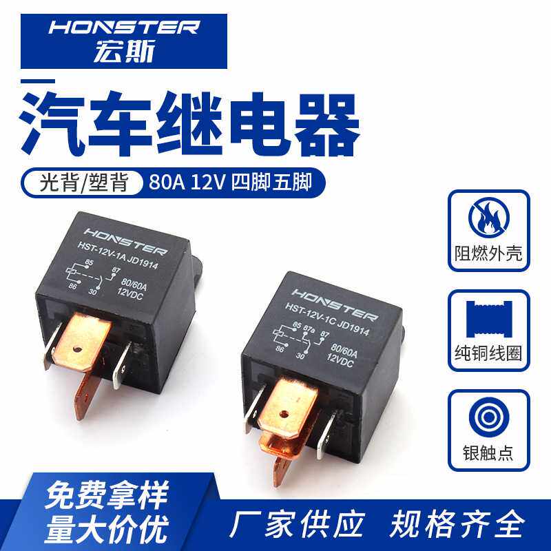 📚 80A继电器 塑背12V四脚五脚 直流常开转换型新能源汽车继电器