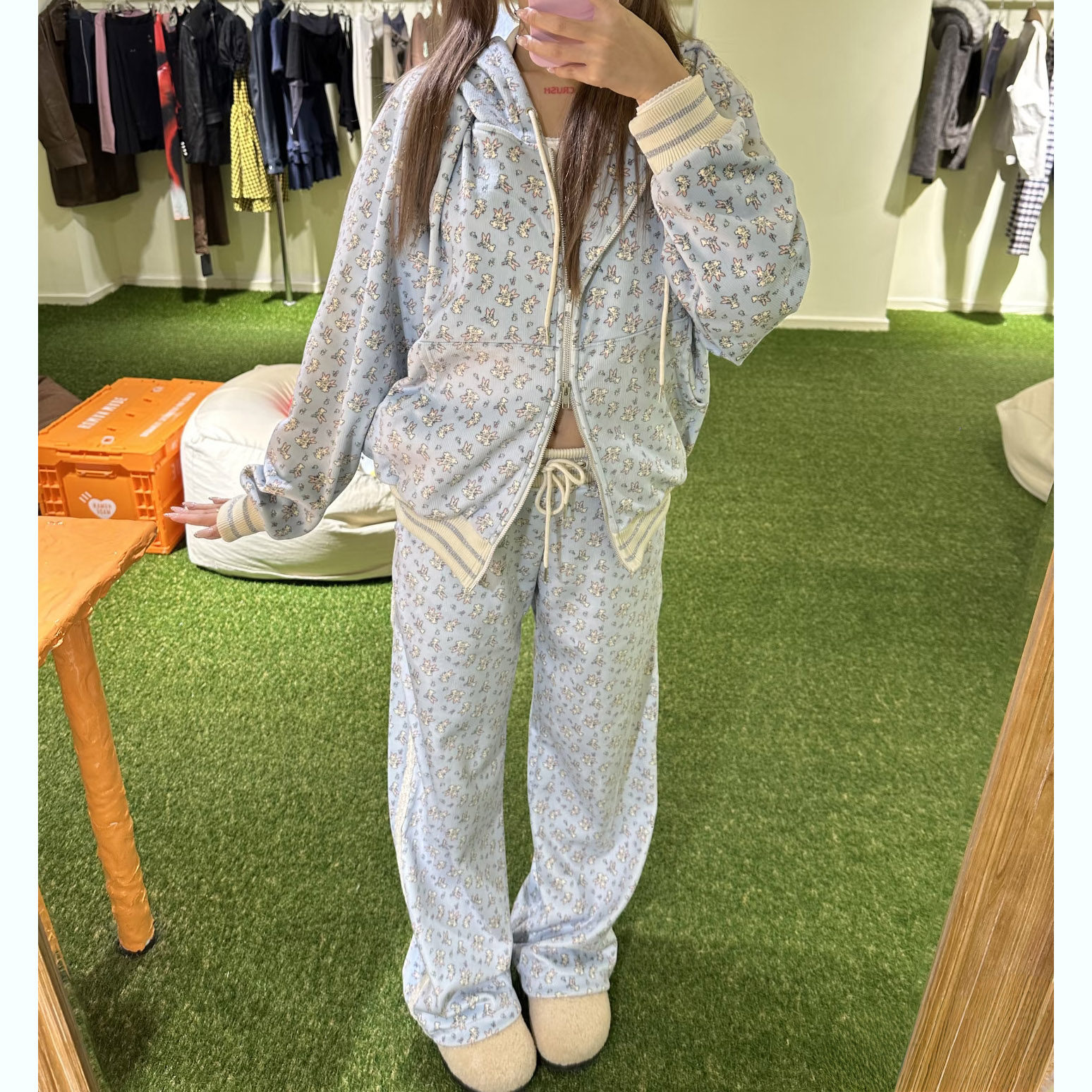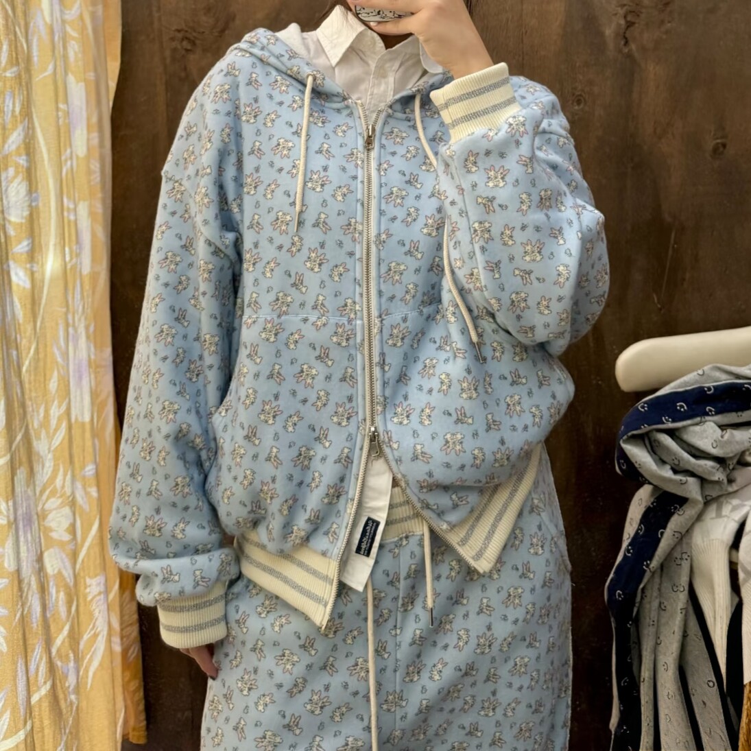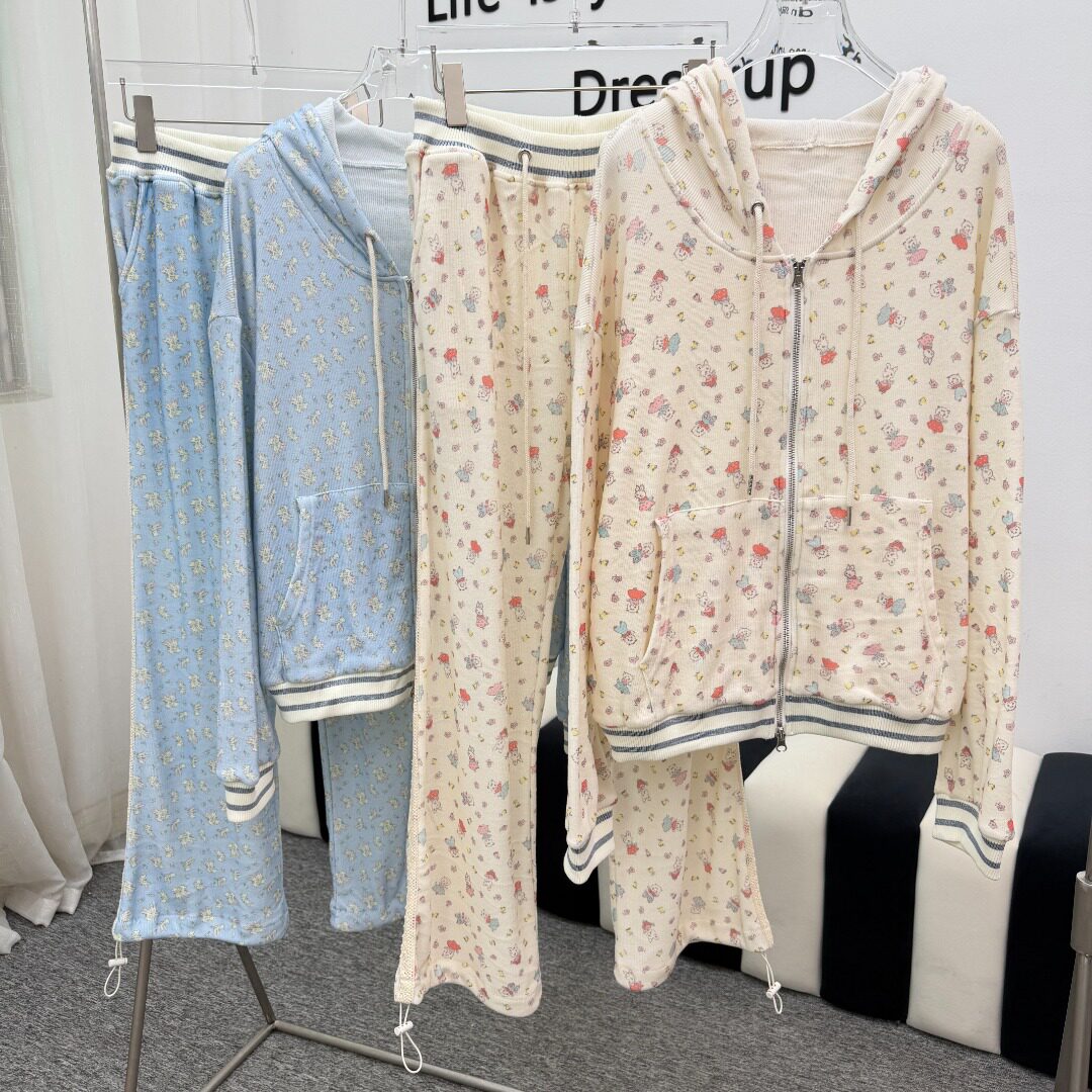 📚 高品质 林娜琏同款Minj兔子印花蕾丝连帽外套卫衣长裤套装25秋冬