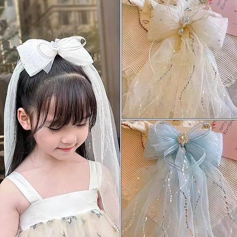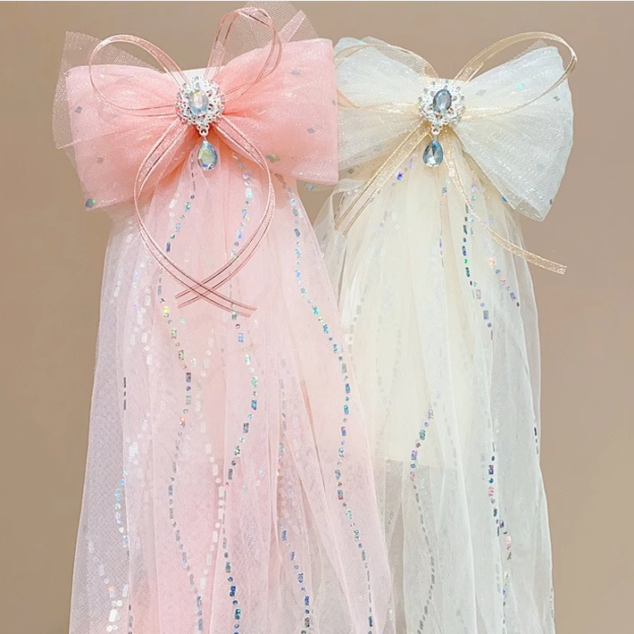 📚 儿童发夹女童超仙钻石蝴蝶结飘纱发夹宝宝长飘带头饰小女孩发卡