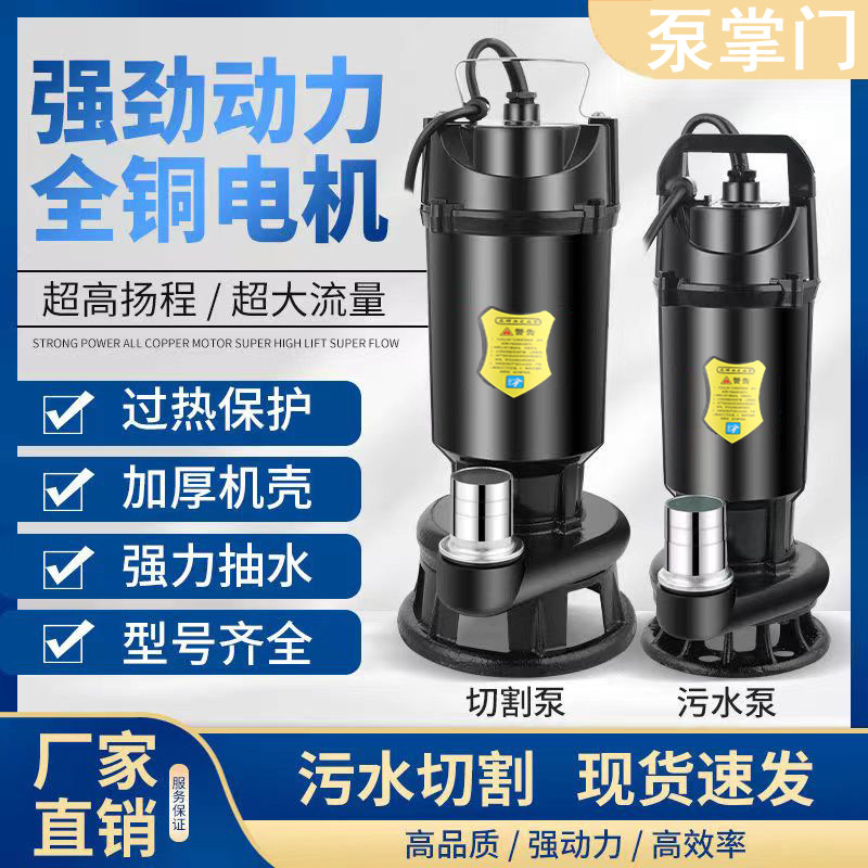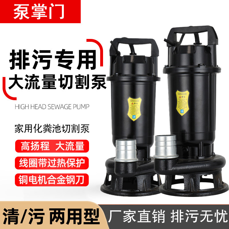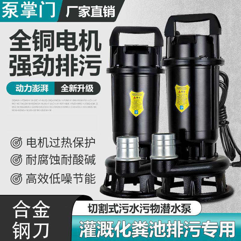 📚 养殖专用小型切割泵大功率排污泵化粪池污水泵多功能潜水抽粪泵