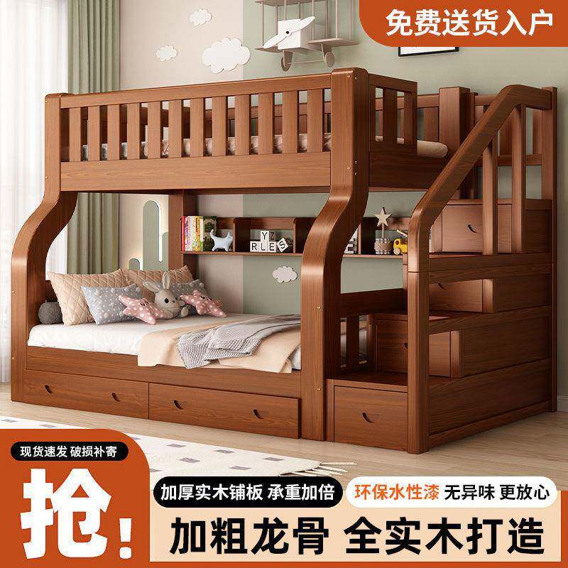 📚 上下无品牌/母双层床二层低儿高童床多功能两层实床木小户型子儿