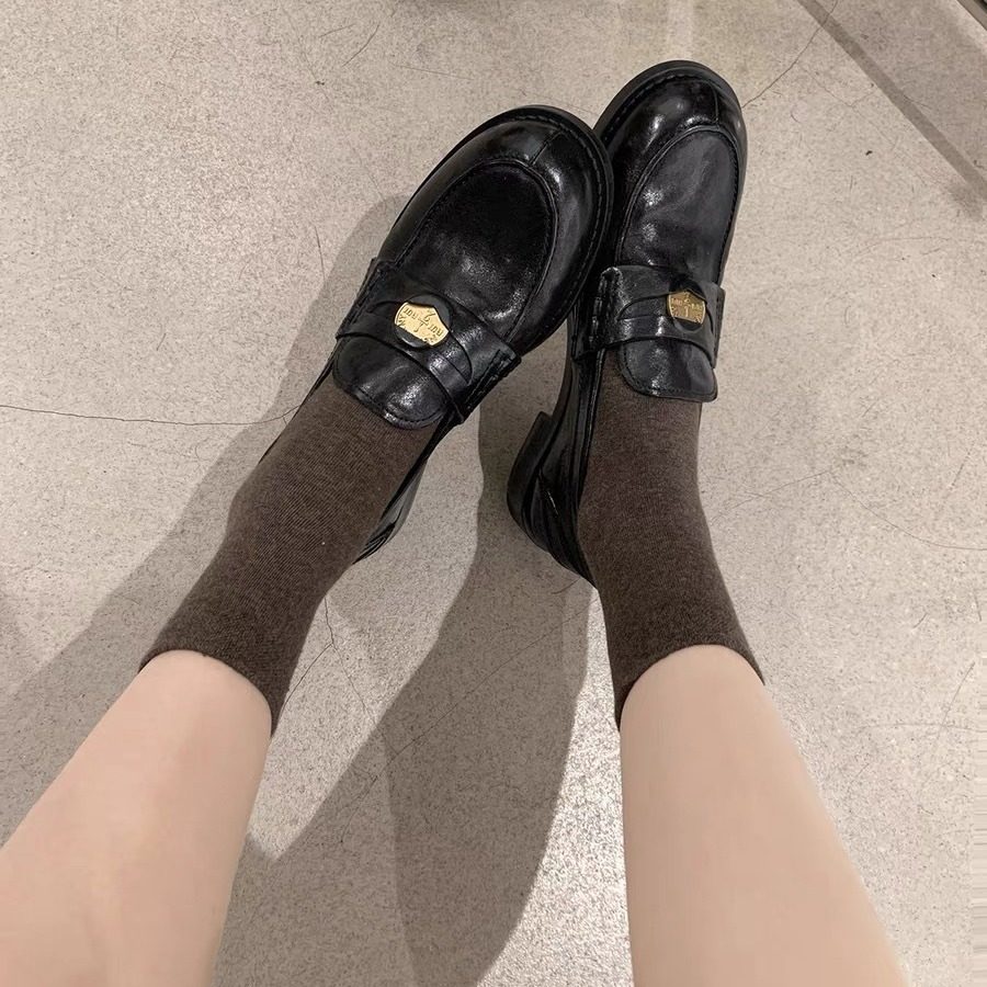 📚 不二橘 法式复古金币乐福鞋女圆头粗跟单鞋女一脚蹬小皮鞋英伦风