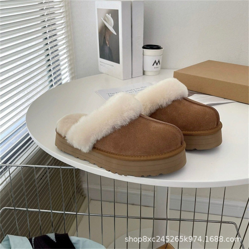 📚 不二橘 雪地靴包头星星半拖女2025冬季羊皮毛一体毛毛厚底拖鞋女