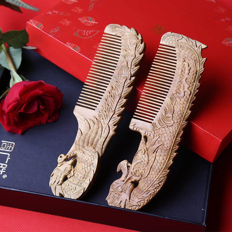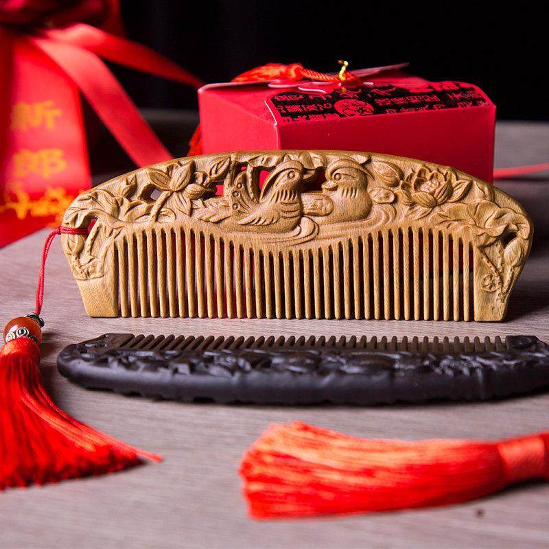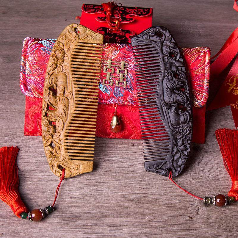 📚 周广胜结婚礼物高档梳子新人结婚对梳檀木梳新婚陪嫁一对创意礼品