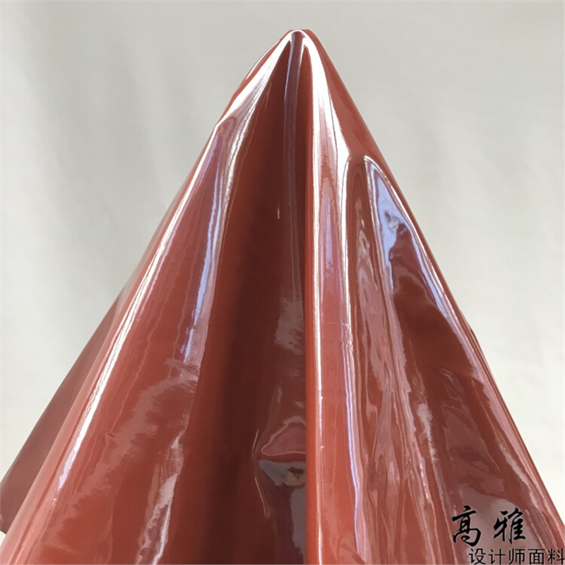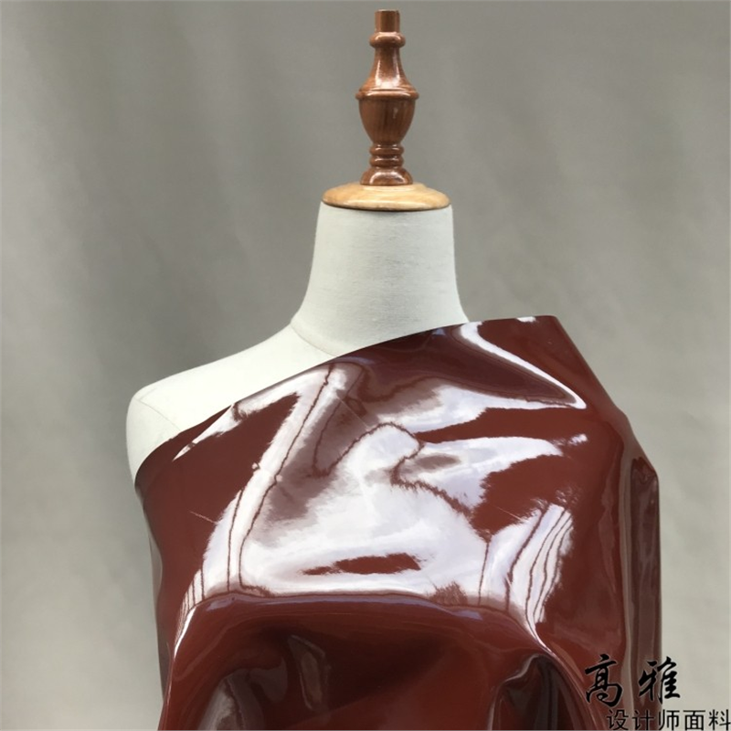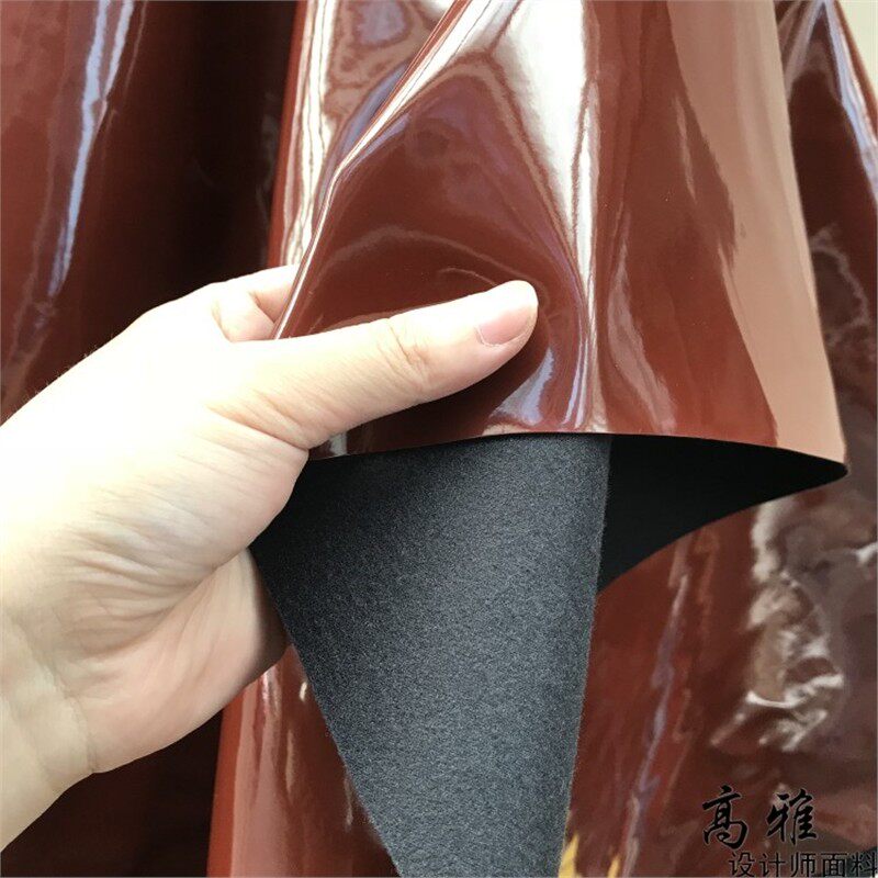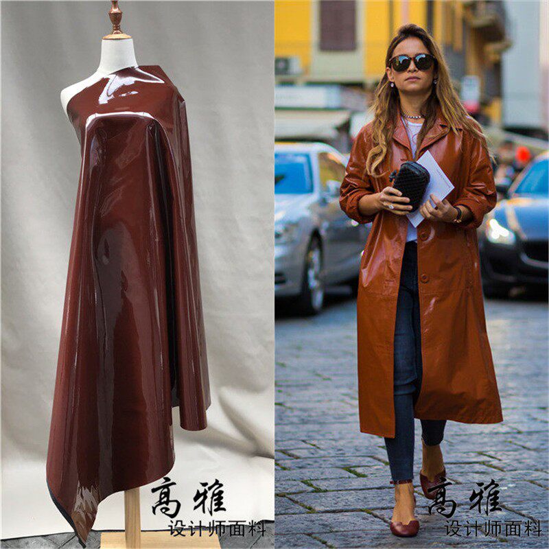 📚 红褐色镜面硬挺pu亮光皮革手工包袋风衣外套设计师服装布料D61