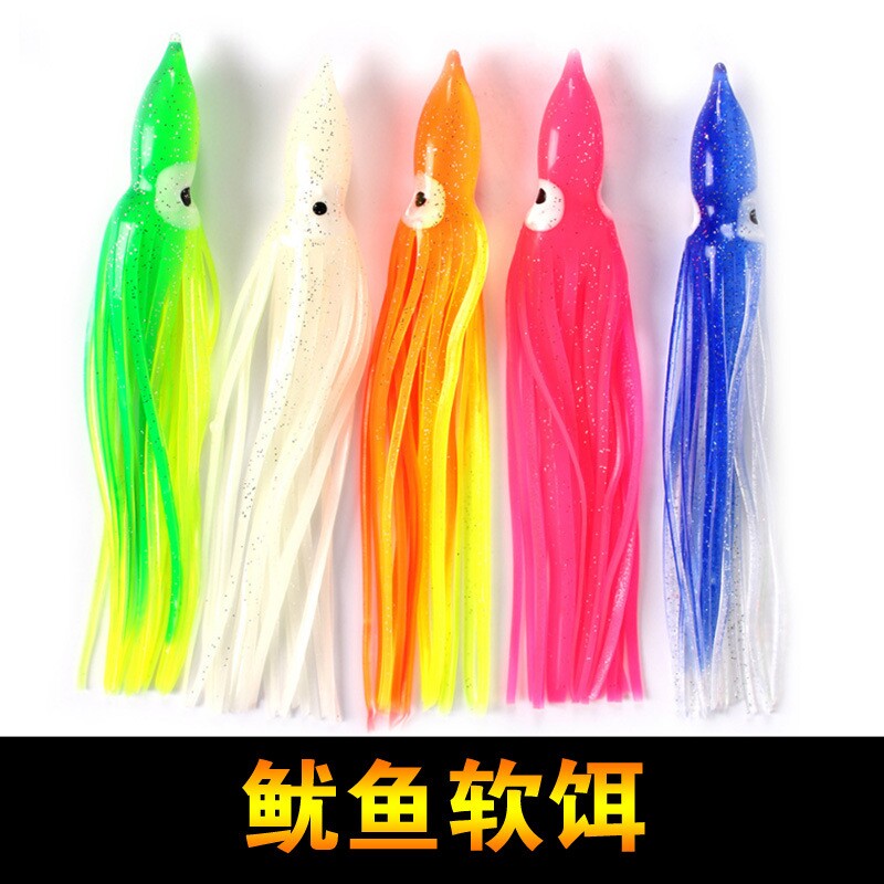 📚 夜光鱿鱼章鱼软饵炎月铁板路亚饵胡须佬仿真假饵海钓船钓串钩配件