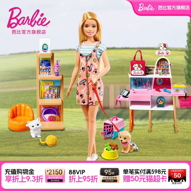 📚 芭比娃娃Barbie宠物商店套装职业体验穿搭搭配女孩过家家玩具礼物