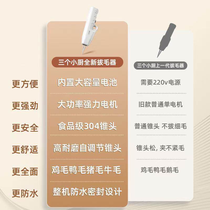 📚 三个小厨家禽电动拔毛机鸡毛鸭毛鹅毛猪毛磨砂锥头防水充电脱毛器