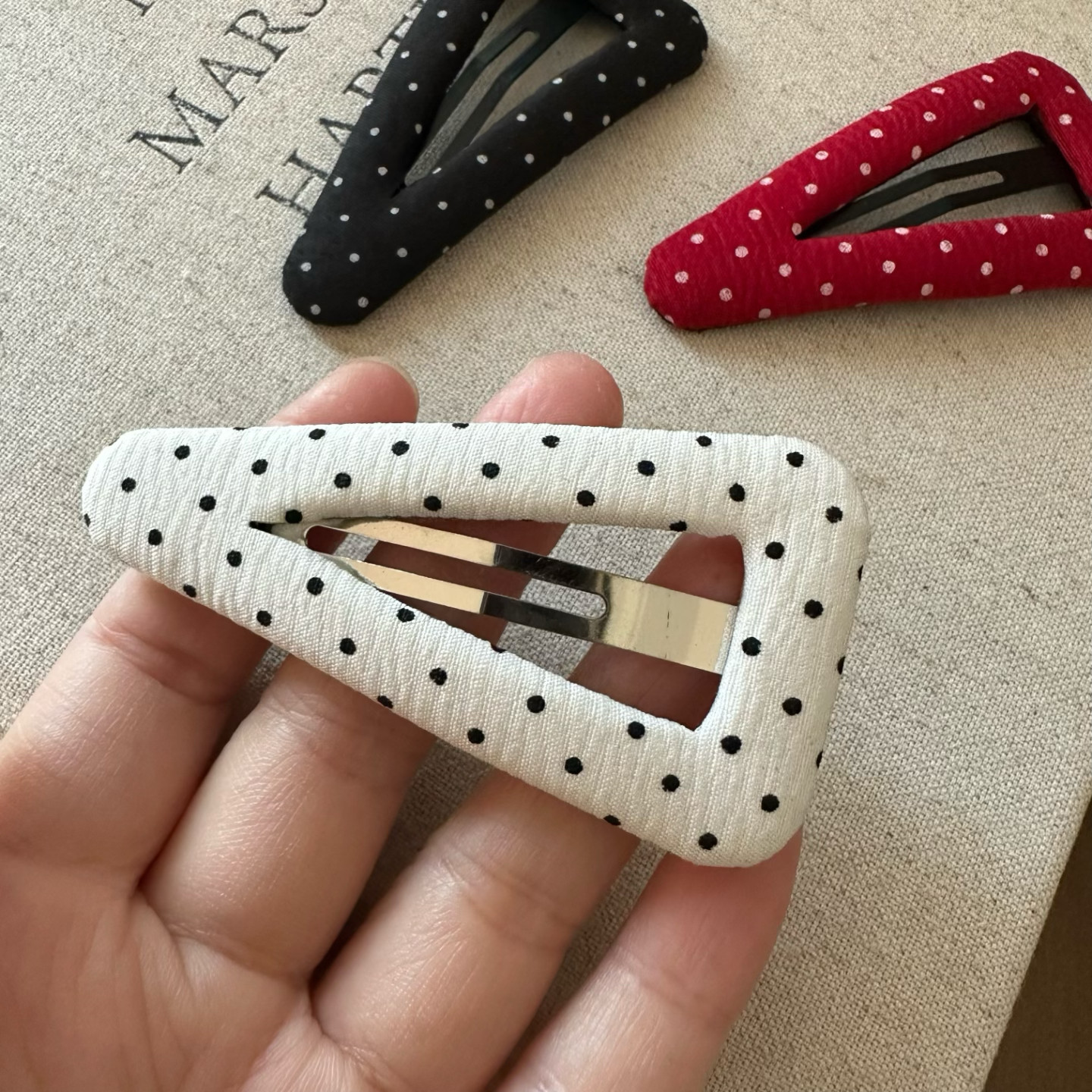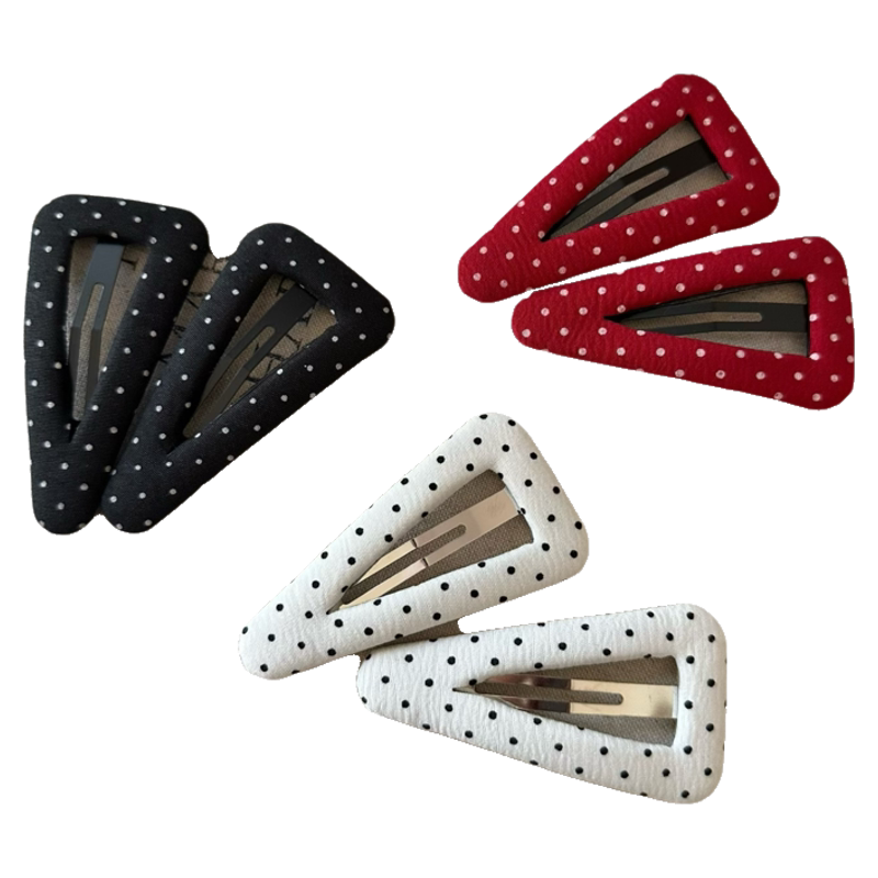 📚 日韩新款手做波点布艺发夹刘海夹掰掰夹复古减龄碎发边夹三角发卡
