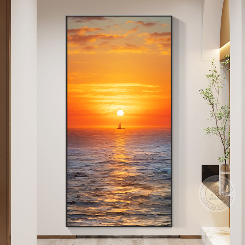 📚 日出东方海景入户玄关装饰画寓意好进门走廊过道挂画东墙入门壁画