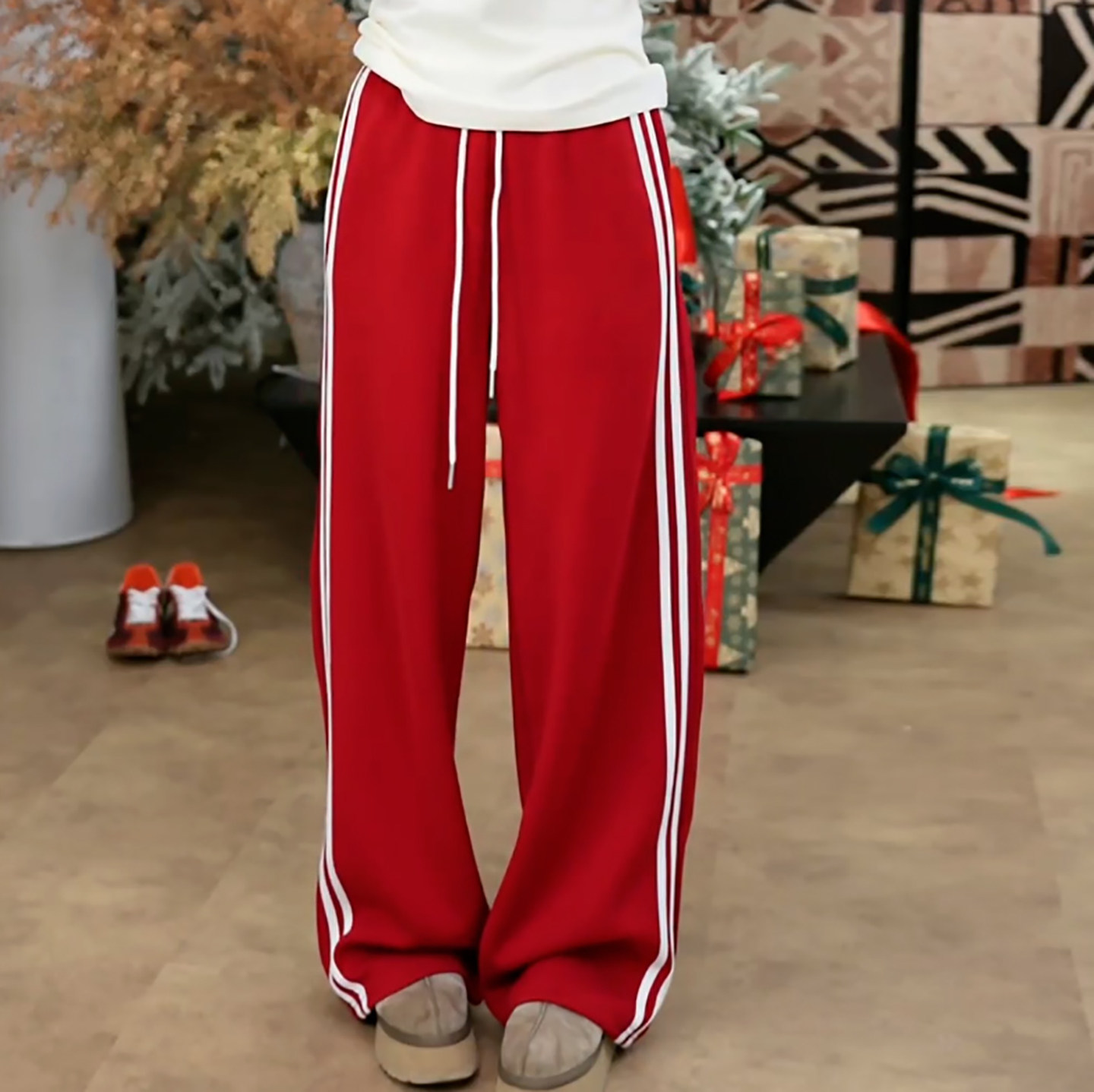 📚 Ader红色条纹运动卫裤女2026春季新款松紧拼接腰头抽绳百搭休闲裤