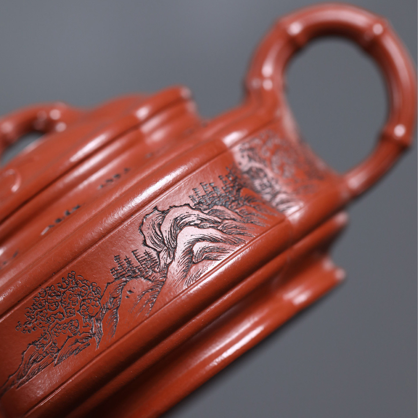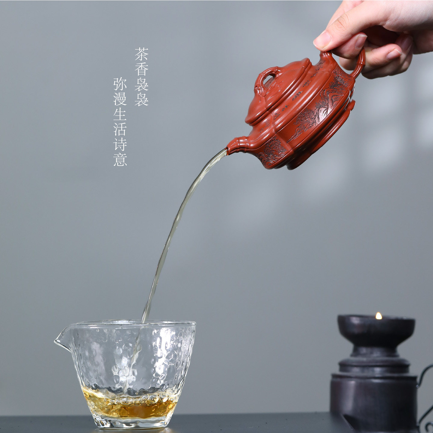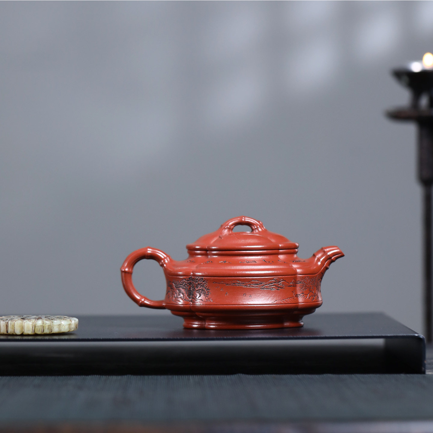 📚 范家壶庄 宜兴紫砂壶名家纯全手工原矿大红袍家用茶具 海棠竹鼓壶