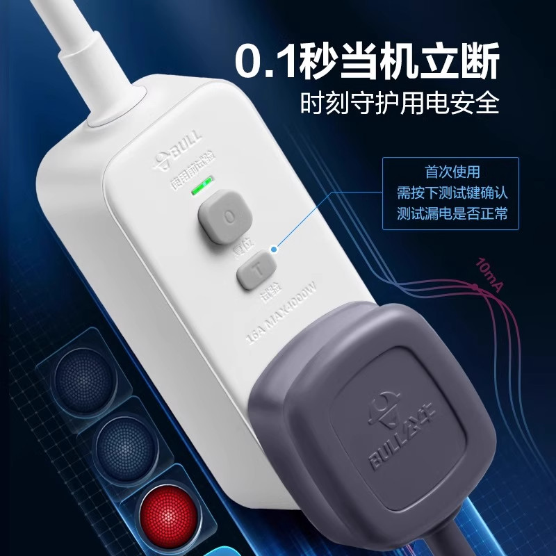 📚 公牛漏电保护器插头自动断电10A/16A电热水器空调防漏电保护插座