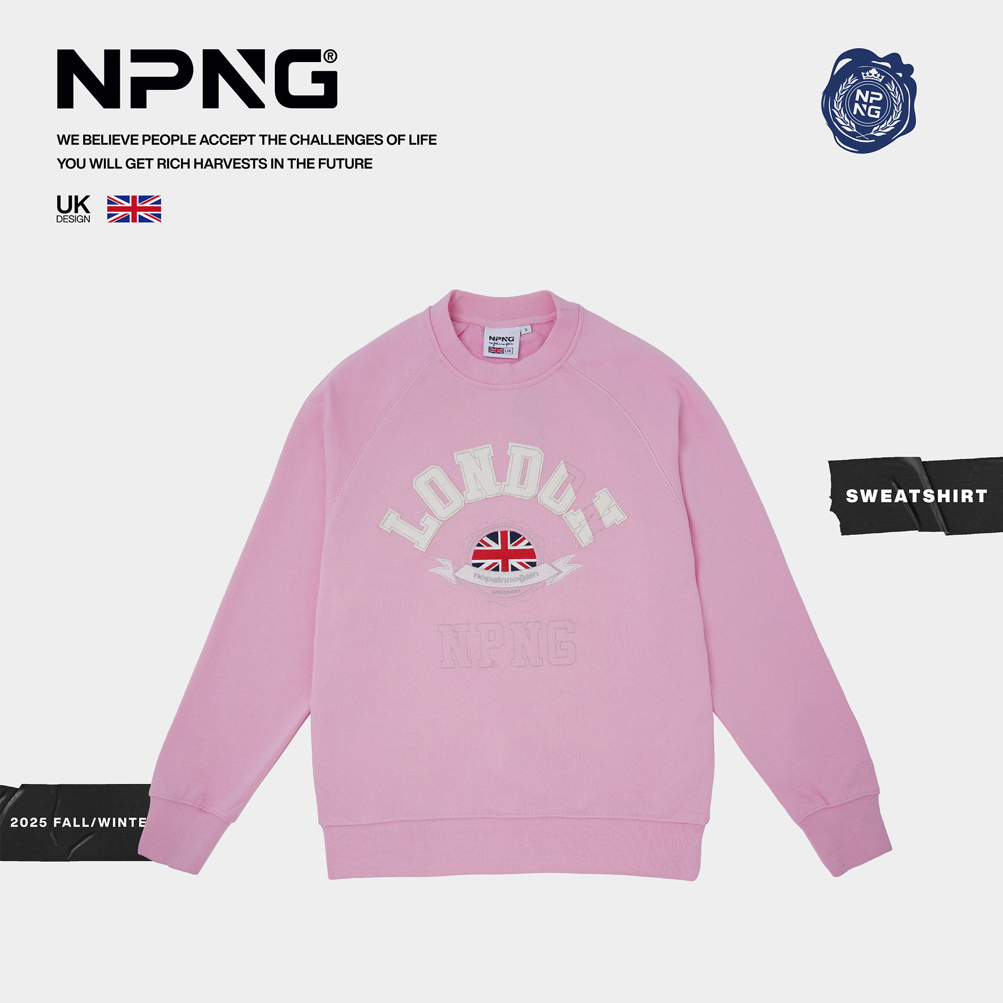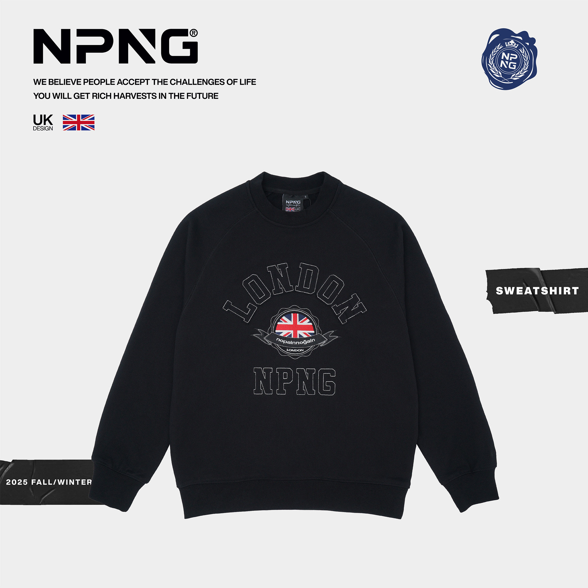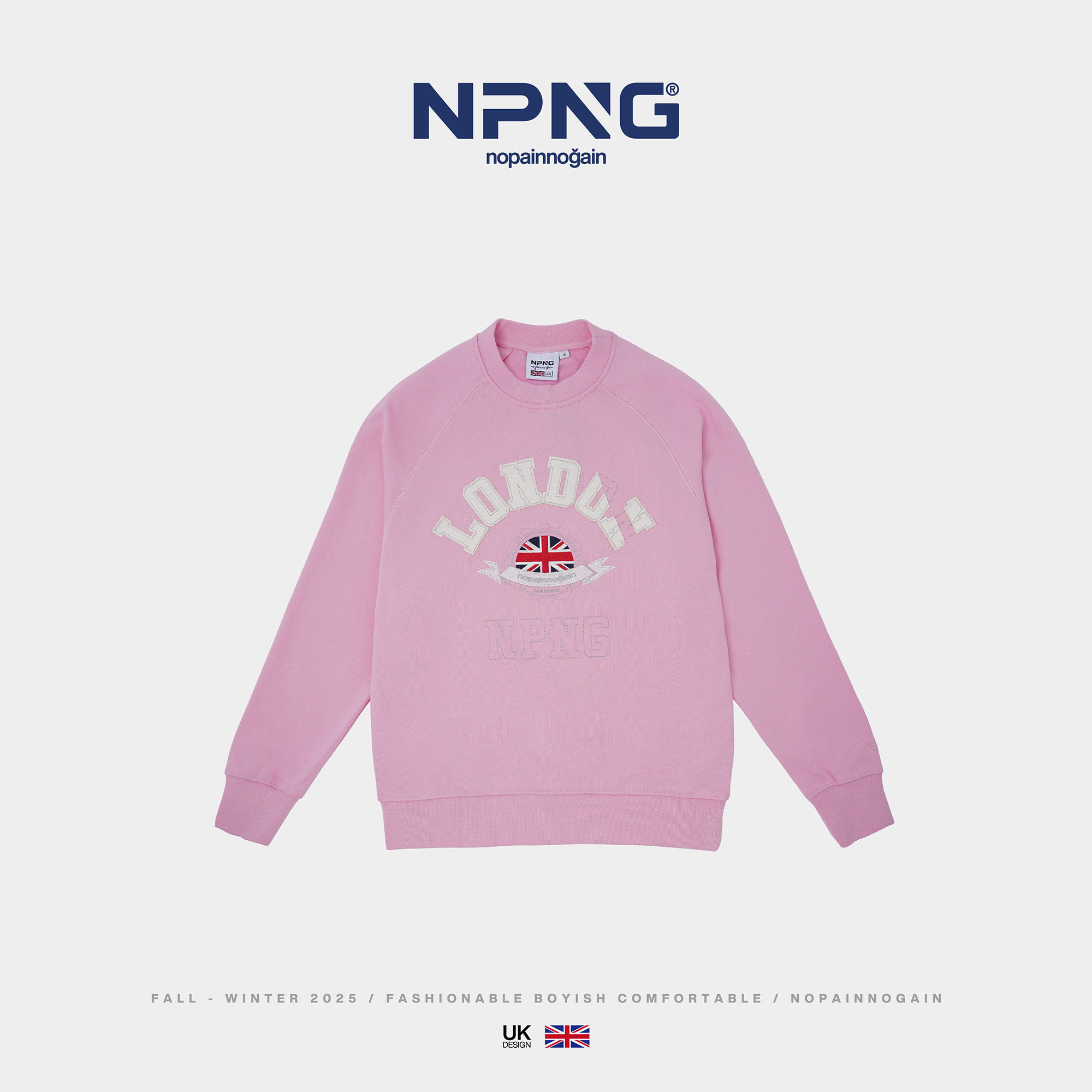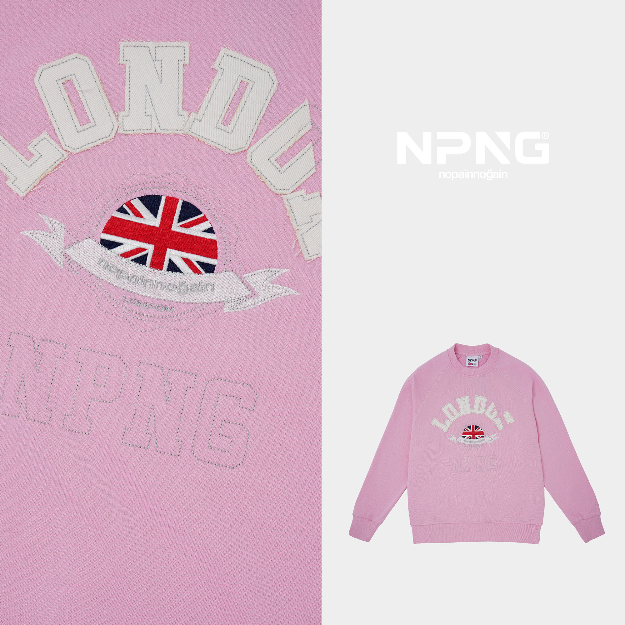 📚 NPNG圆领卫衣男女同款英国国旗刺绣套头衫宽松休闲上衣情侣装