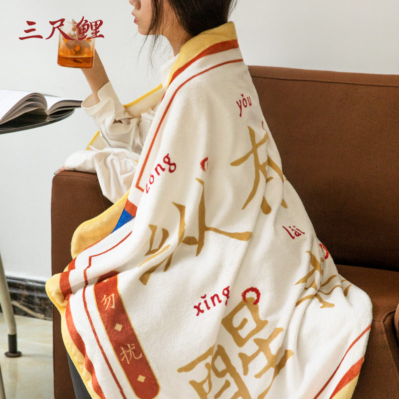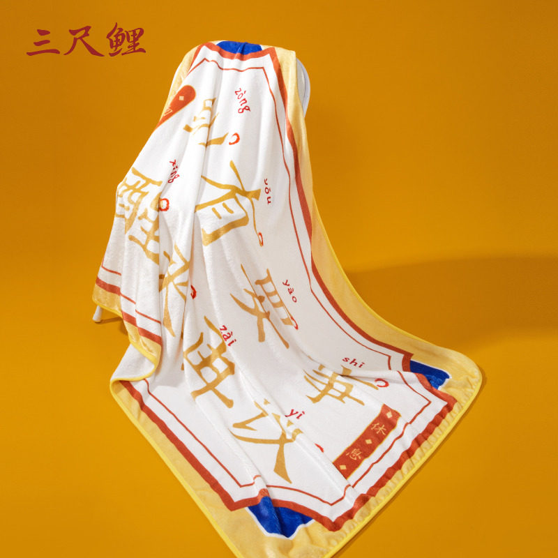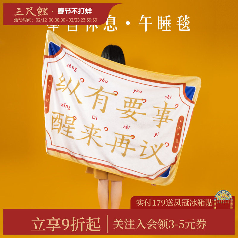 📚 三尺鲤国潮文具 奉旨休息毛毯博物文创毛绒毯办公室午休毯学生午睡毯空调毯高颜值国风趣味毯子毕业生日礼物