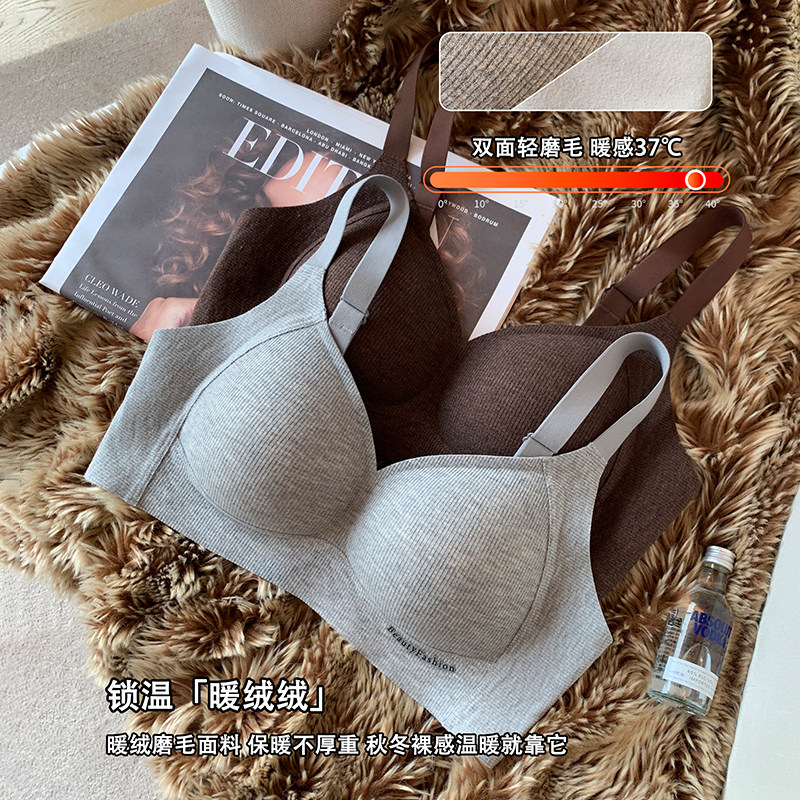 📚 秋冬磨毛螺纹保暖内衣女小胸提拉聚拢无痕无钢圈收副乳防下垂文胸