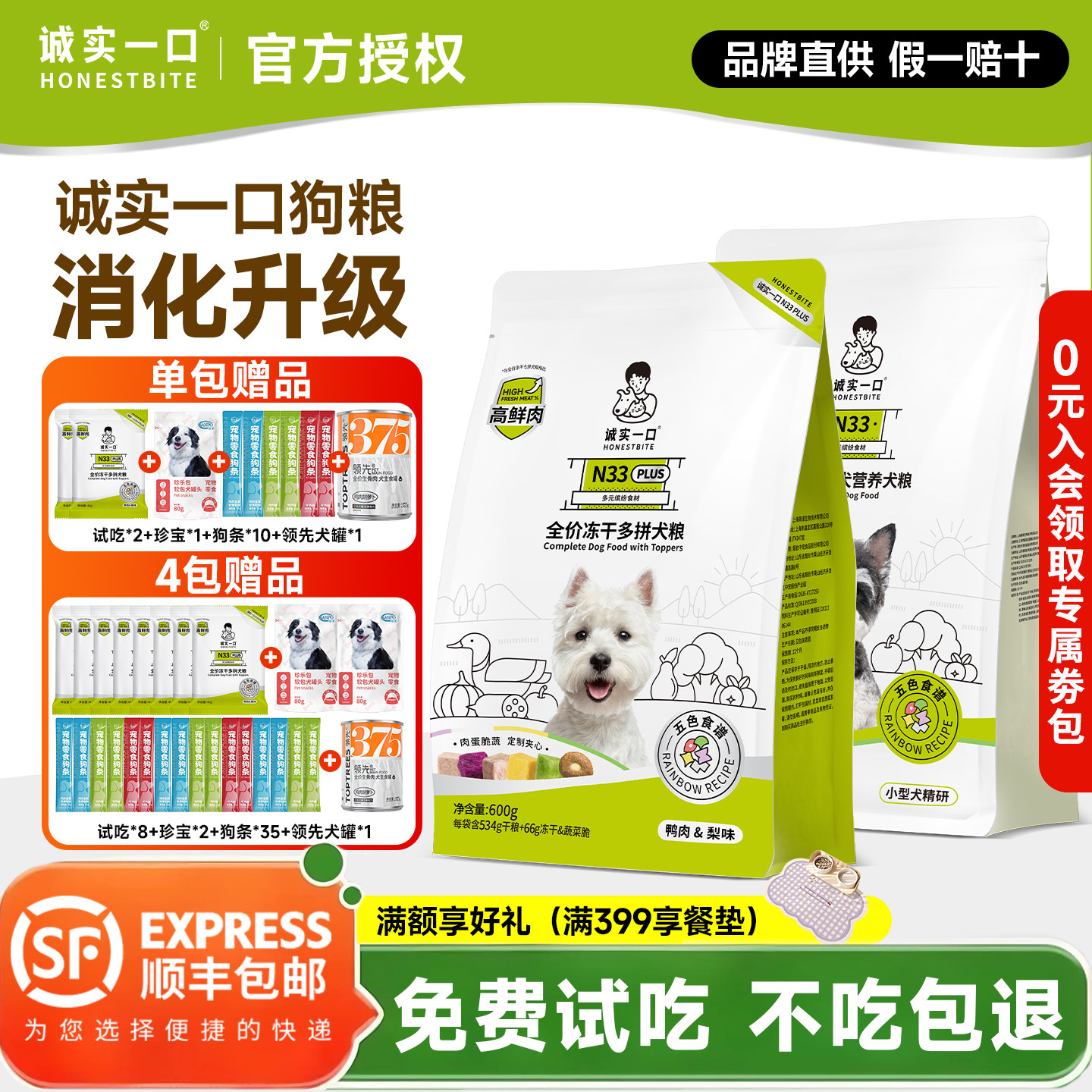 📚 诚实一口狗粮n33plus冻干狗粮小型犬中大型犬粮泰迪幼犬通用狗粮