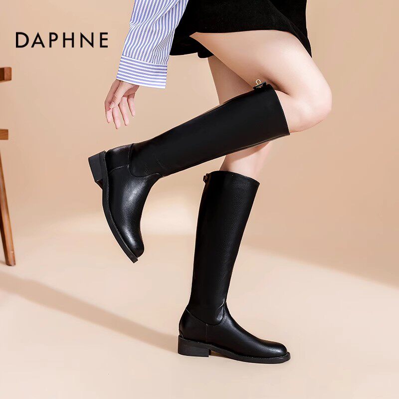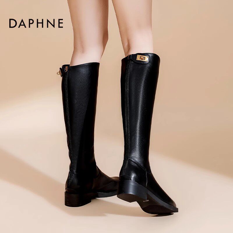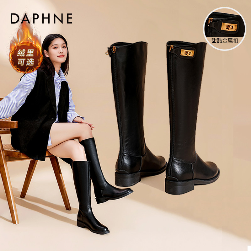 📚 达芙妮厚底长筒靴女2025新款秋冬金属锁扣长靴高筒靴骑士靴子女靴