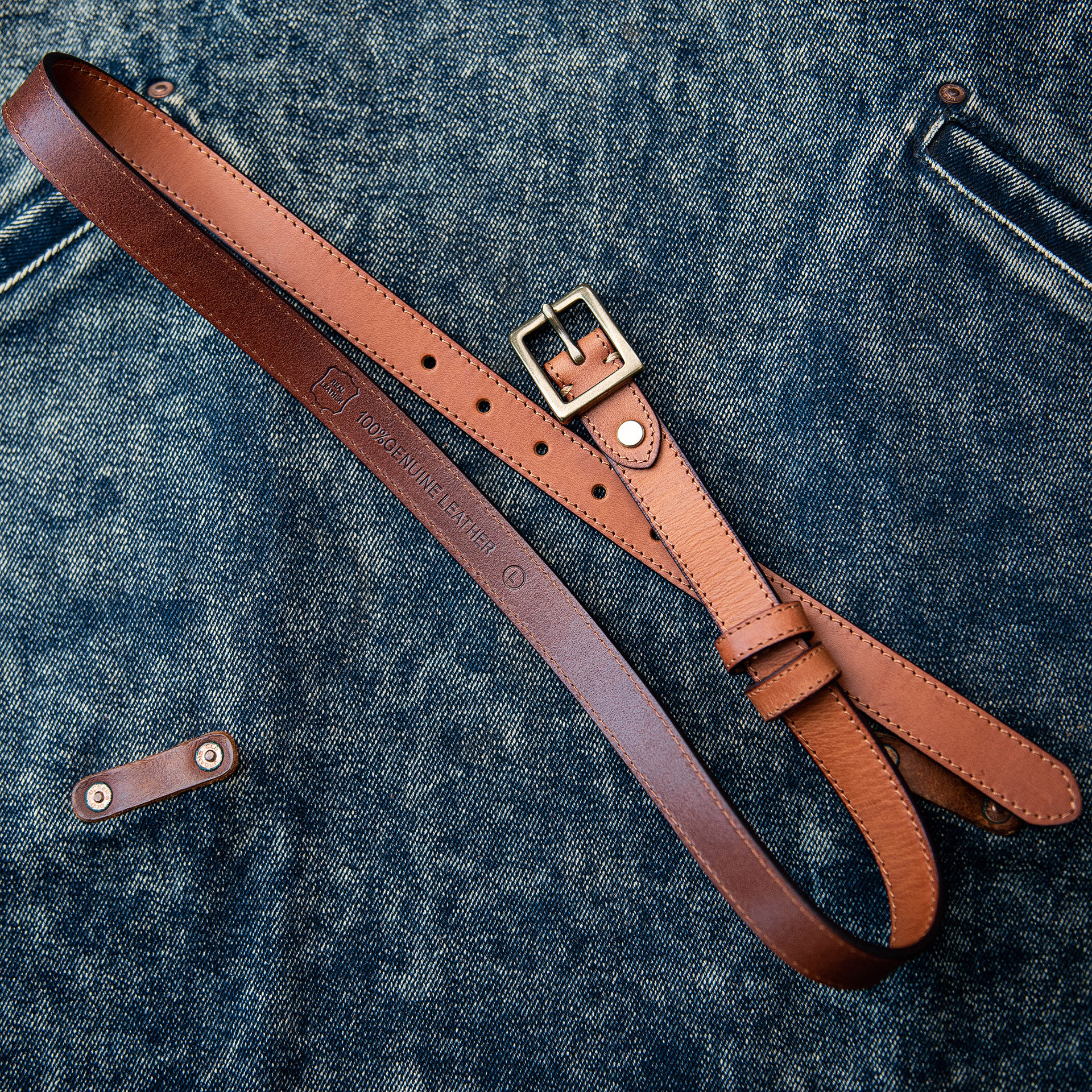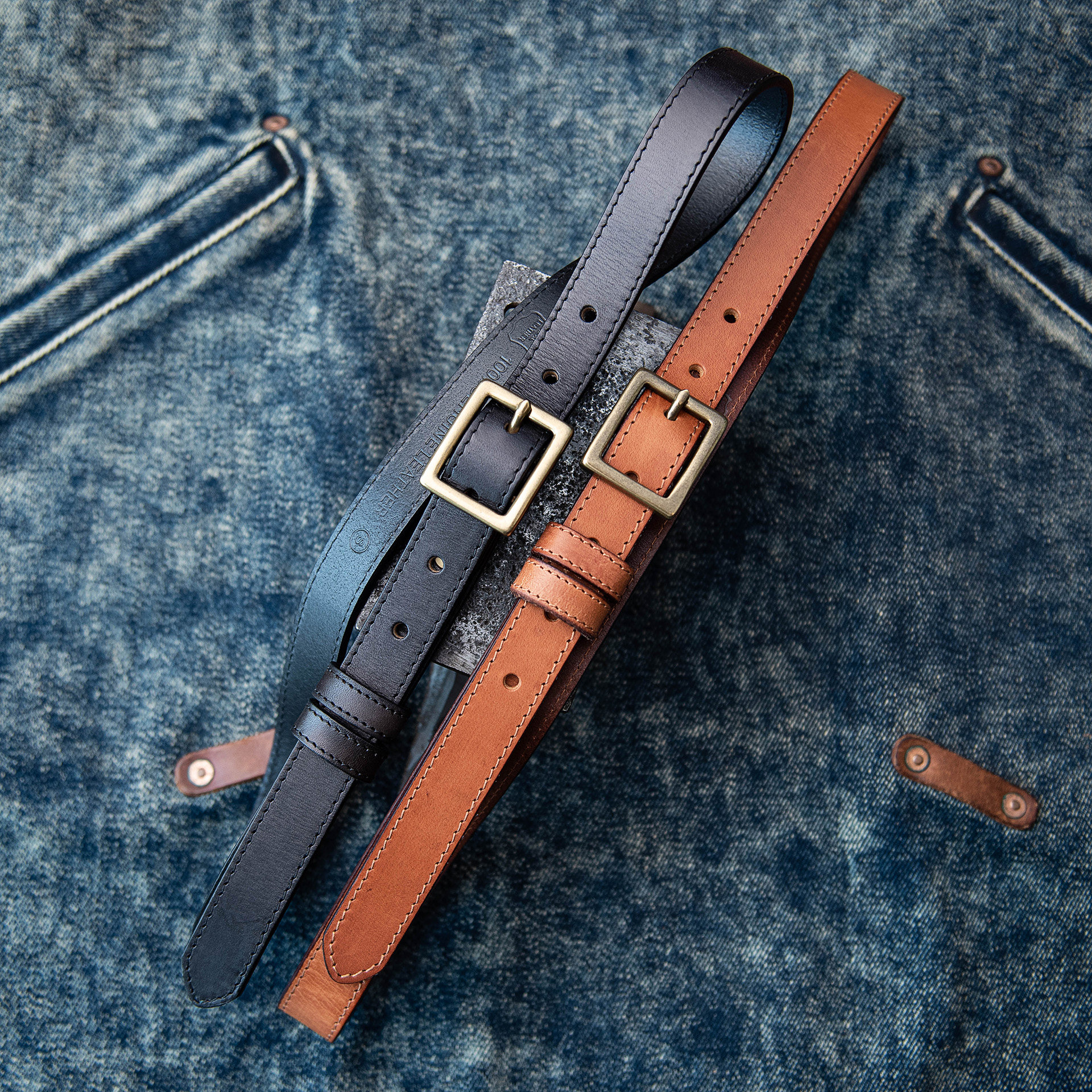 📚 山岩 真皮休闲女腰带 复古日字扣铜 百搭装饰皮带 简约车缝线设计