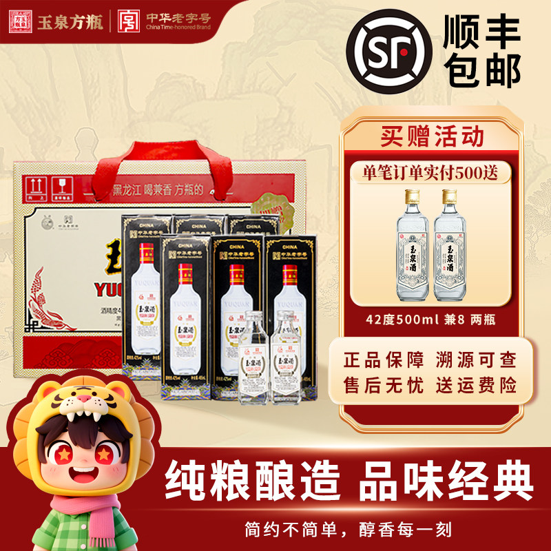 📚 年货礼盒 玉泉老方瓶42度浓酱兼香型东北白酒485ml*6礼盒装口粮酒