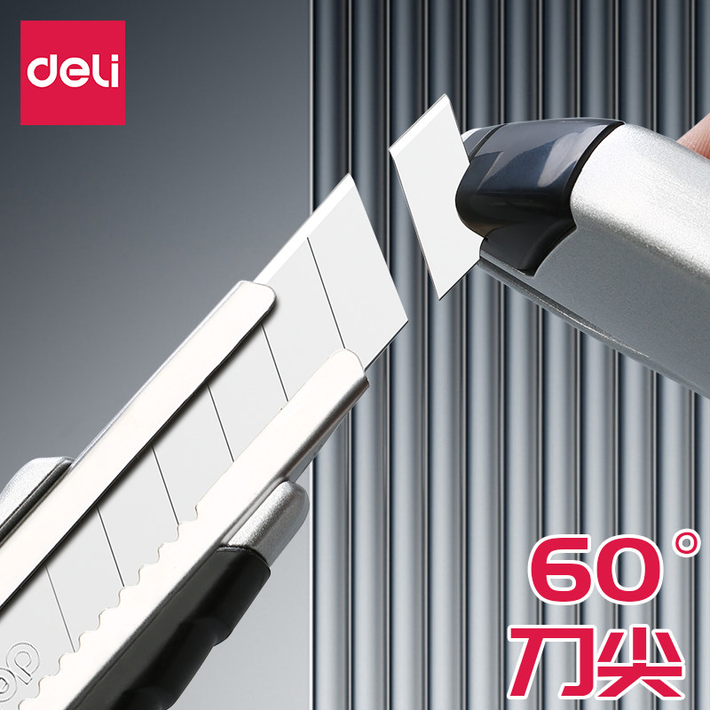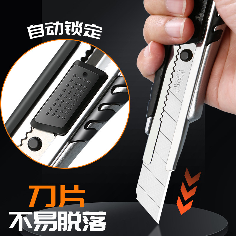 📚 得力美工刀不锈钢大号重型美工刀2057金属裁纸刀壁纸刀手工快递刀学生家用银色刀片大号工业用银色刀片拆快递