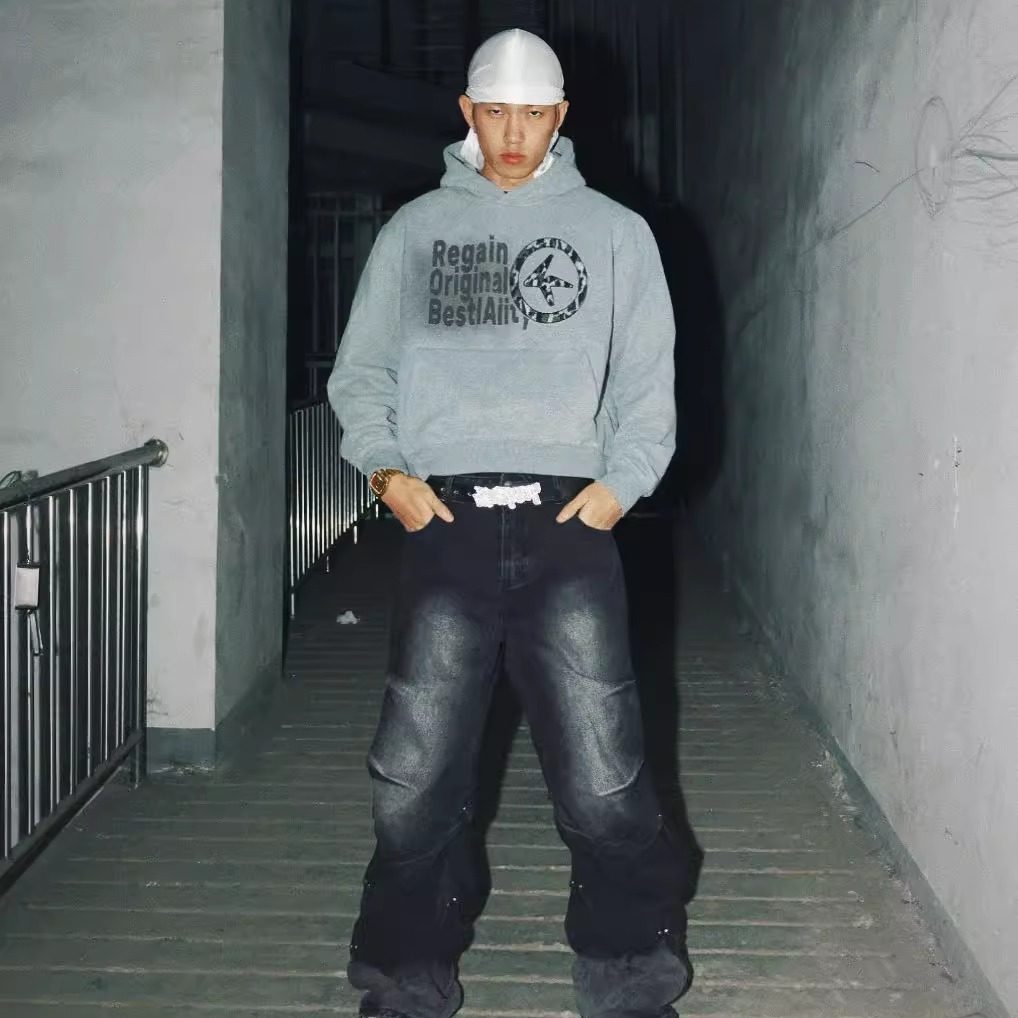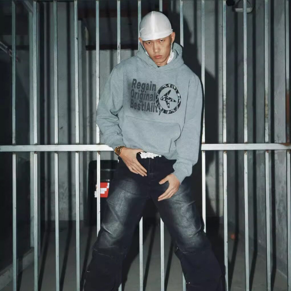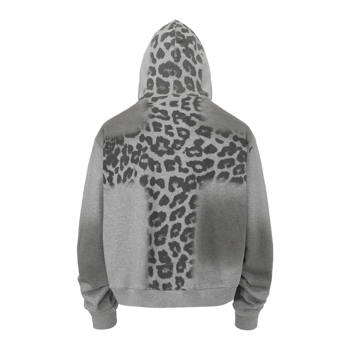 📚 4AM 人面兽性原创灰色豹纹植绒连帽加绒卫衣小众重磅BOXY短宽帽衫