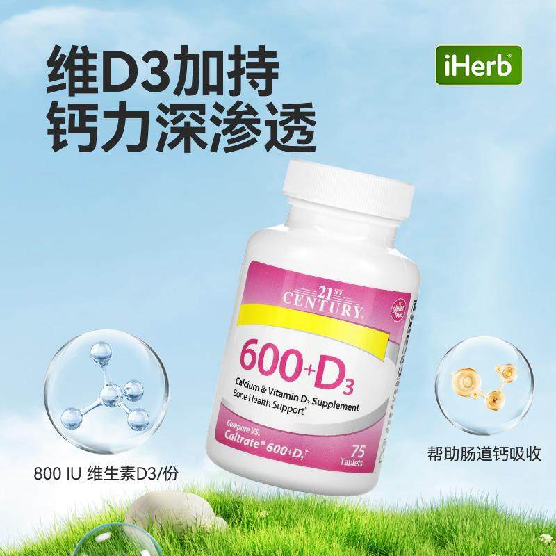📚 21st Century补钙含维生素600+D3片骨骼肌肉健康神经健康好吸收运