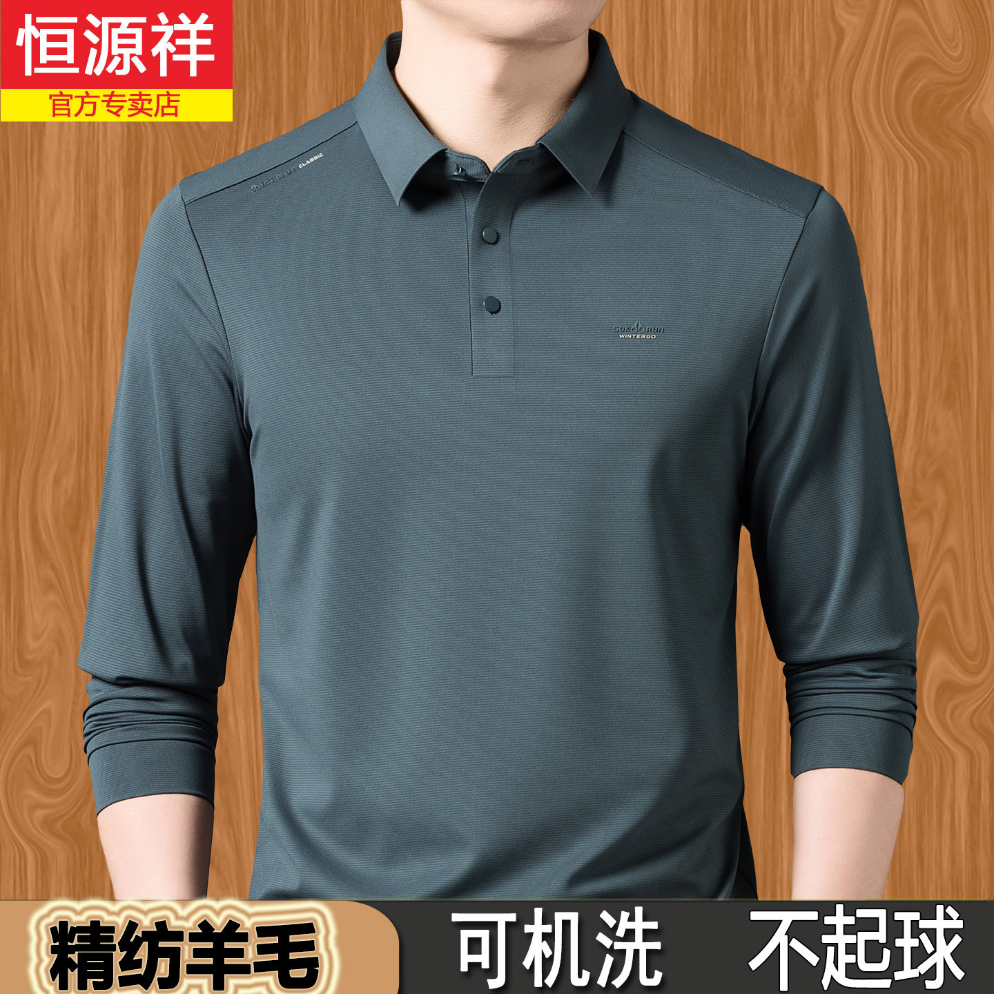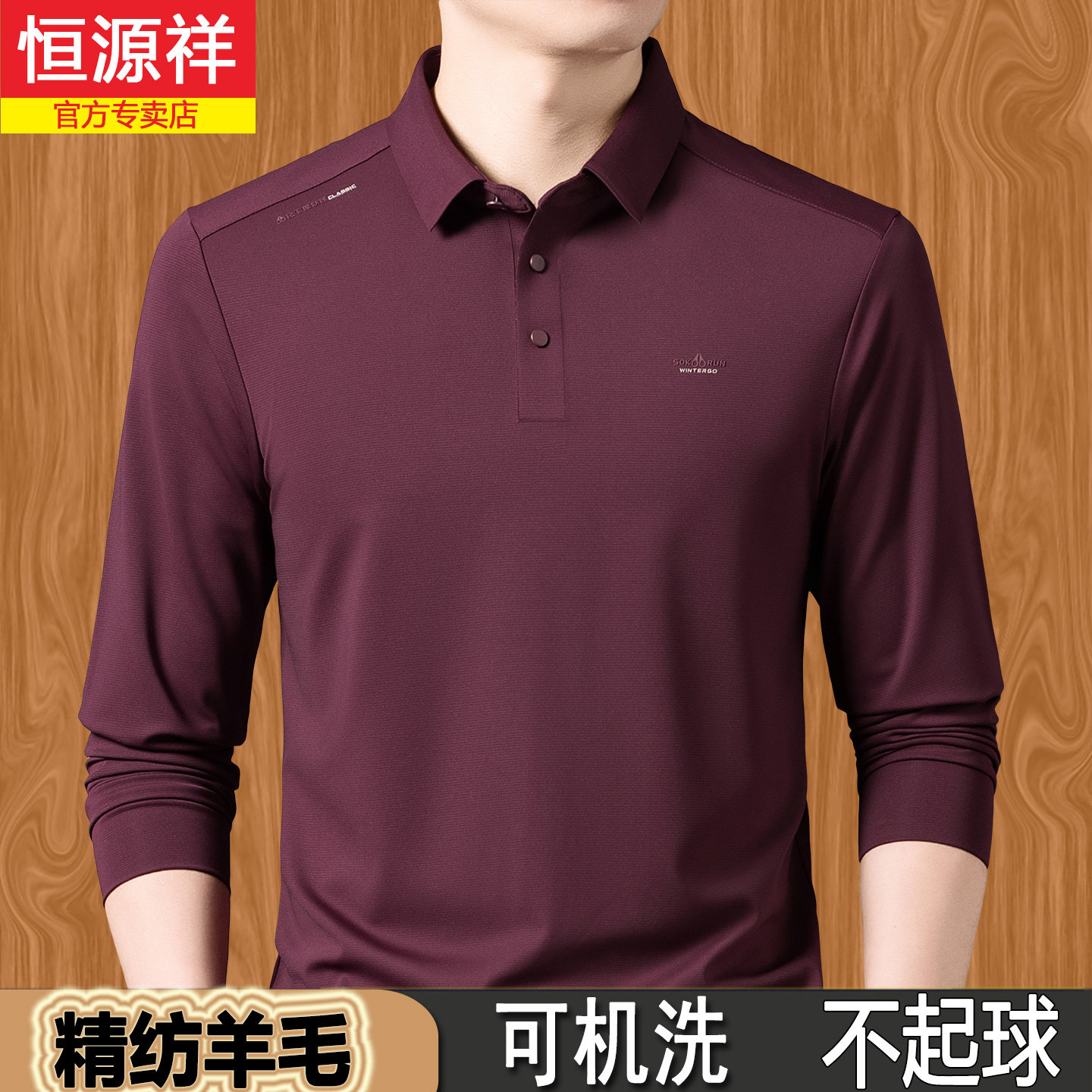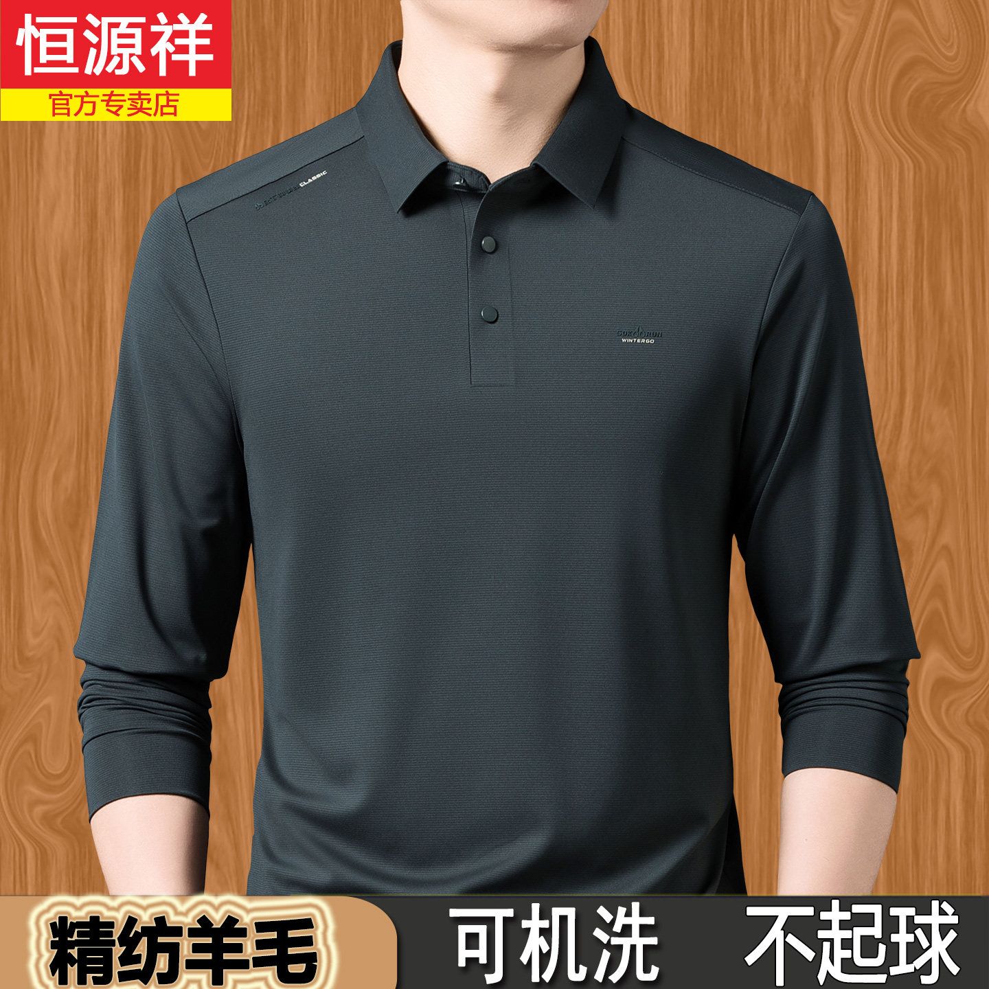 📚 恒源祥春秋季薄款中年男士羊毛长袖t恤男宽松翻领上衣打底polo衫