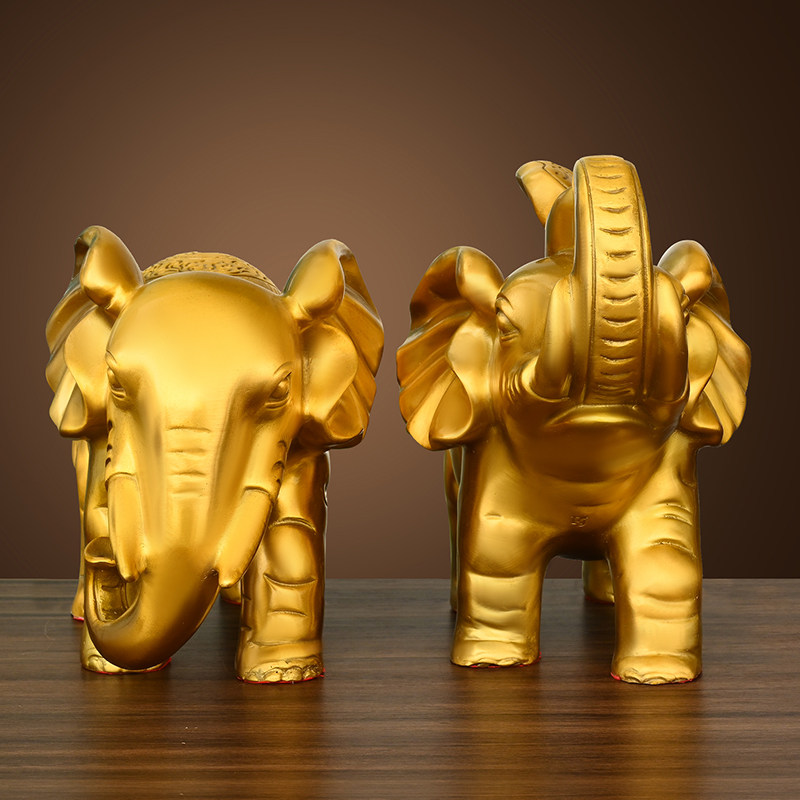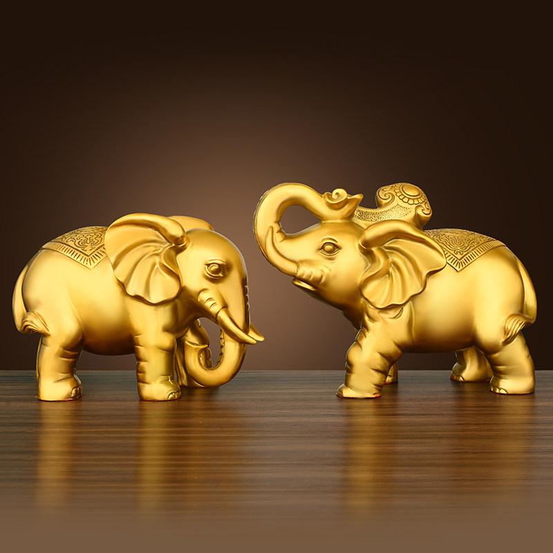 📚 纯黄铜大象摆件一对财富对象吸水招宝客厅玄关象大号工艺装饰品