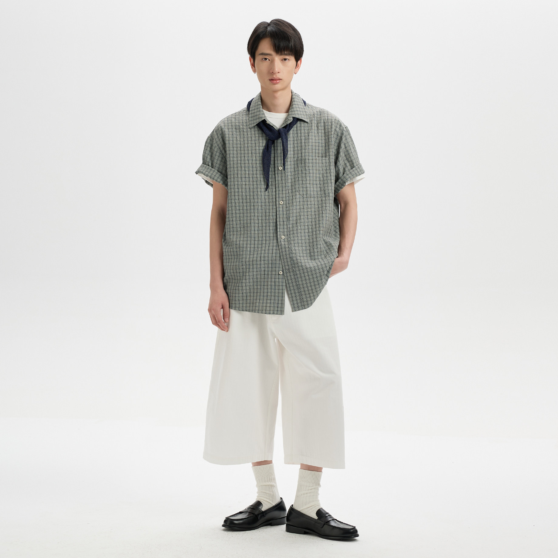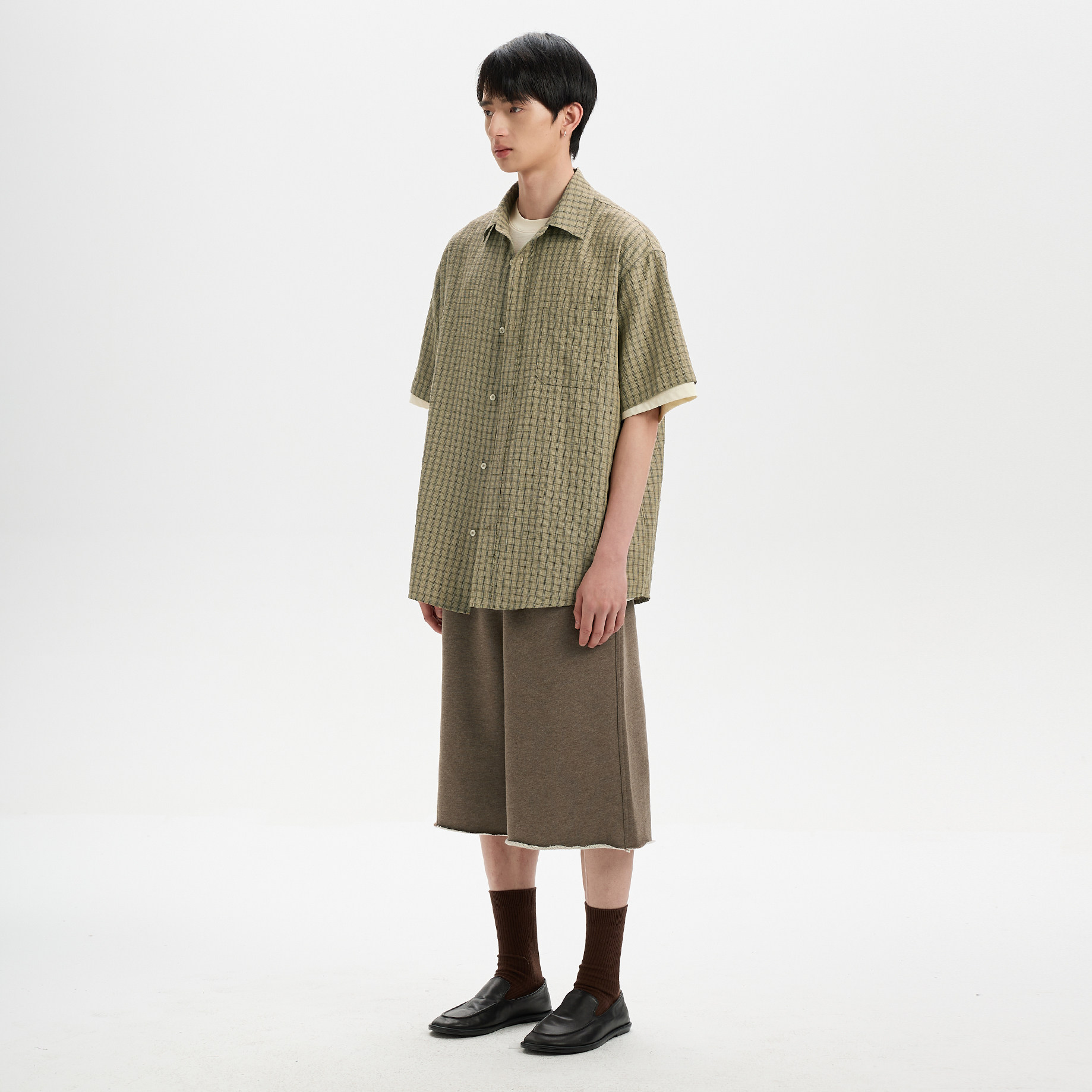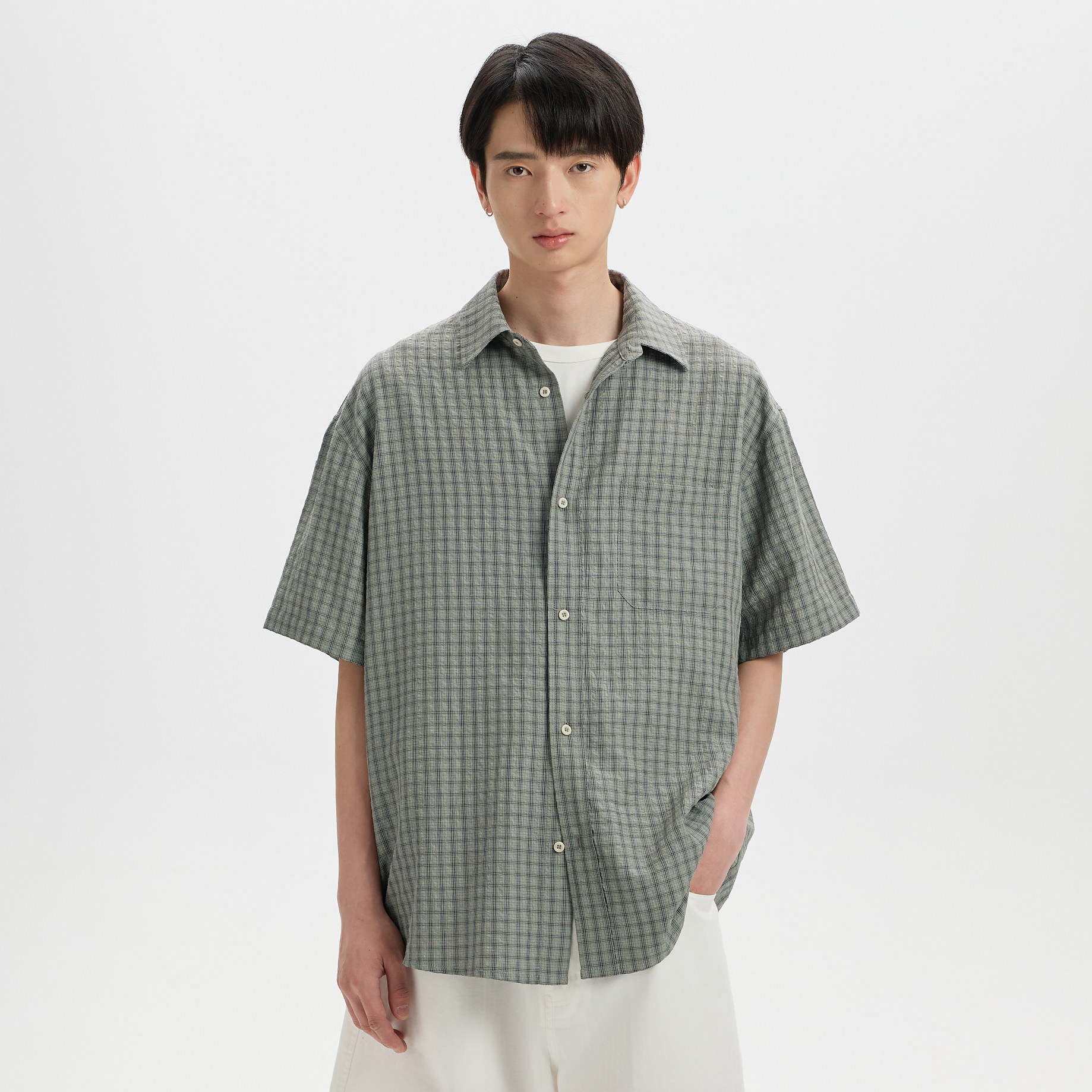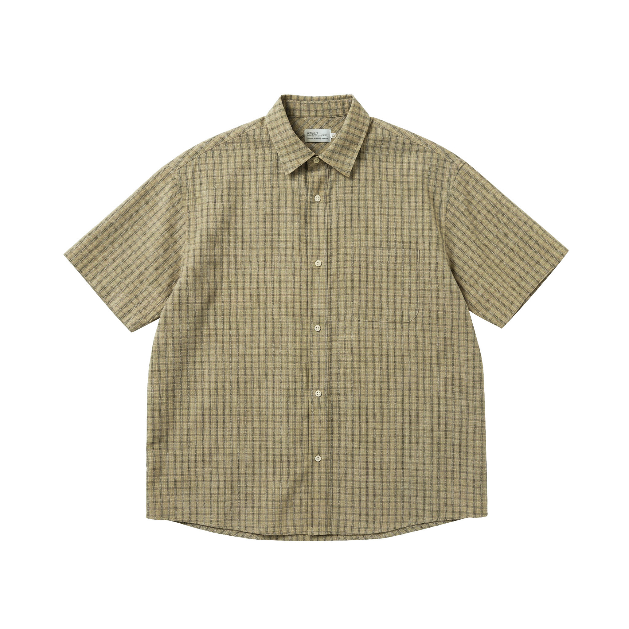 📚 BUTTBILL 莱赛尔亚麻混纺格纹泡泡纱衬衣服叠穿单穿宽松短袖衬衫