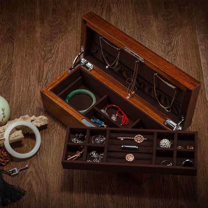 📚 高档夭桃(饰品俄)罗斯榆木纯实 木质双层首饰盒珠宝收 藏收纳盒
