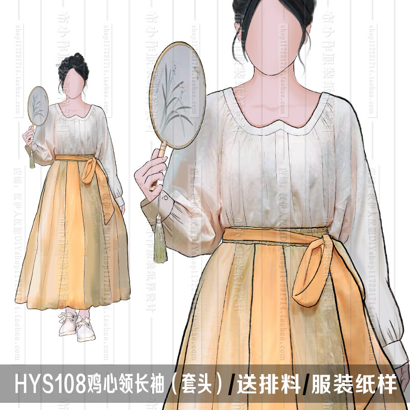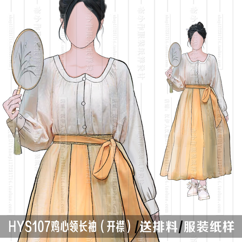 📚 1:1实物纸样 鸡心领 破裙 袖克夫衬衫 汉服纸样 汉伊人手工diy