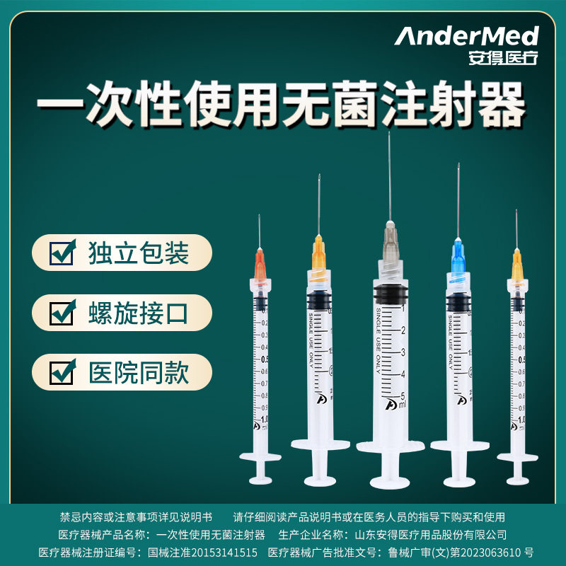📚 新华安得医疗一次性螺口注射器螺纹1/2/5ml无菌注射针管针筒带针
