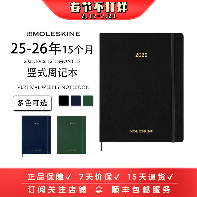 📚 Moleskine2026年Weekly Diary15个月竖式周记本日程本笔记本手账