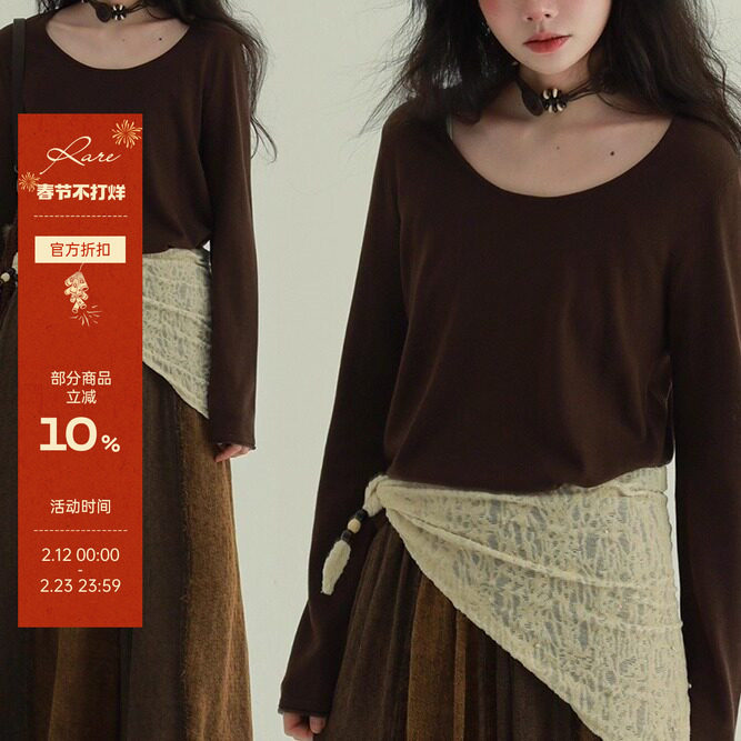 📚 稀有RARE 搭配王者U领针织打底衫文艺复古休闲小众设计长袖上衣女