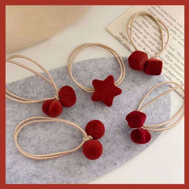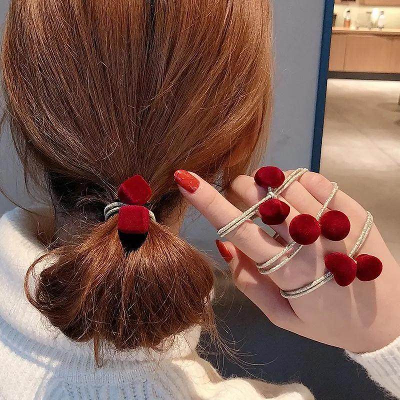 📚 新款红色国风喜庆粗头绳冬款毛绒发圈森女法式学院风ins网红饰品