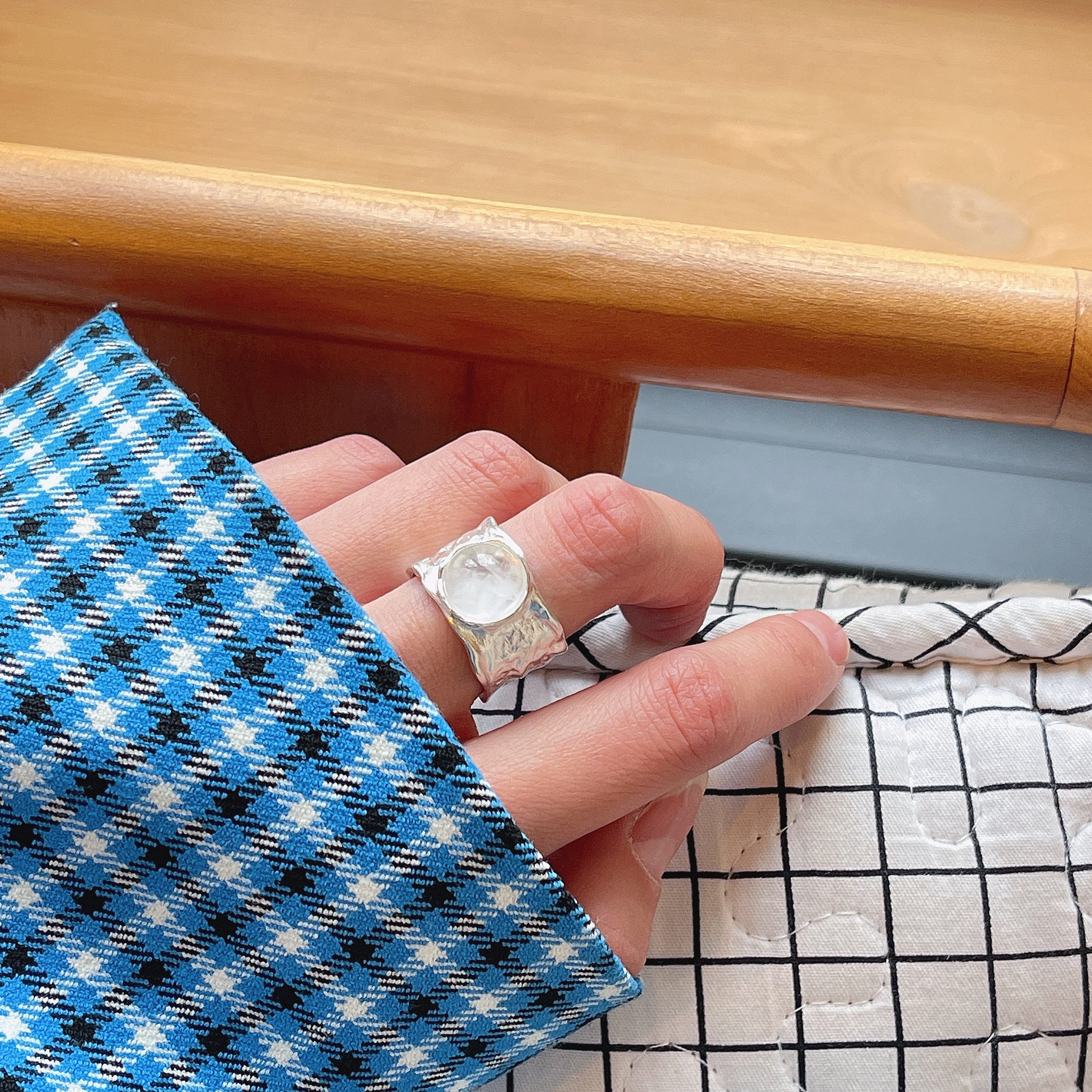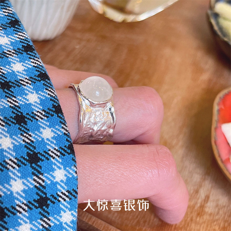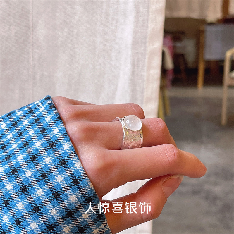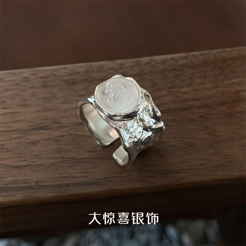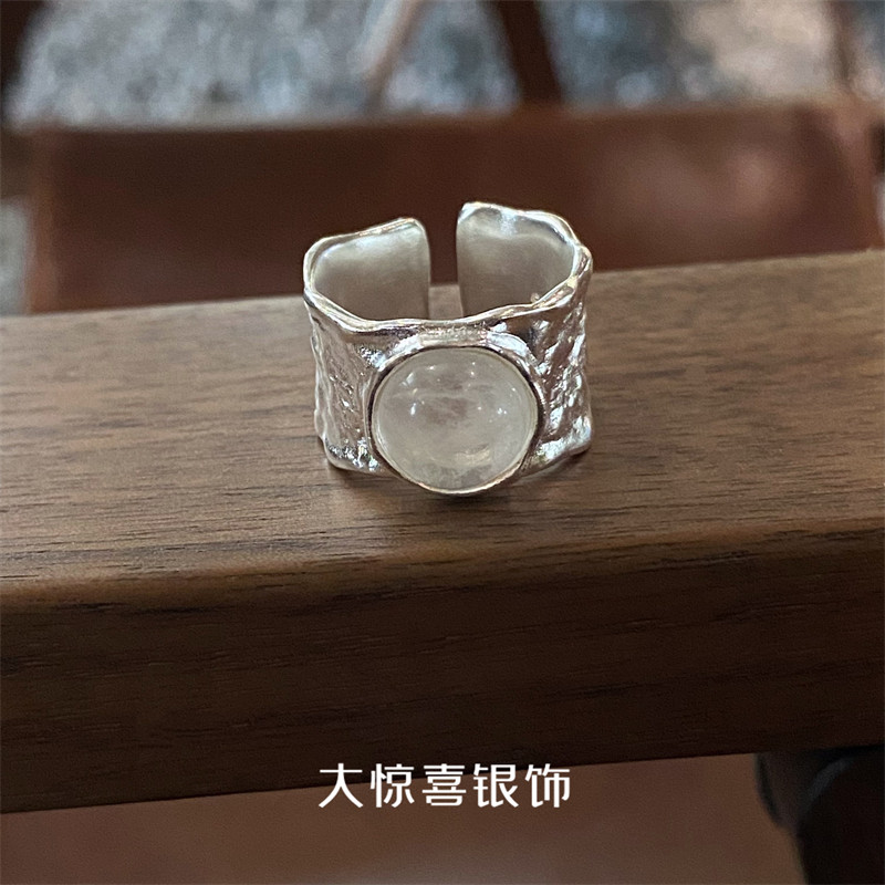 📚 天然白水晶925纯银戒指宽女小众设计高级感ins冷淡风极简食指中指