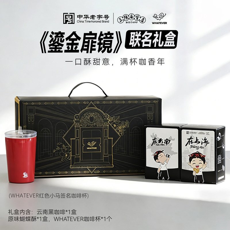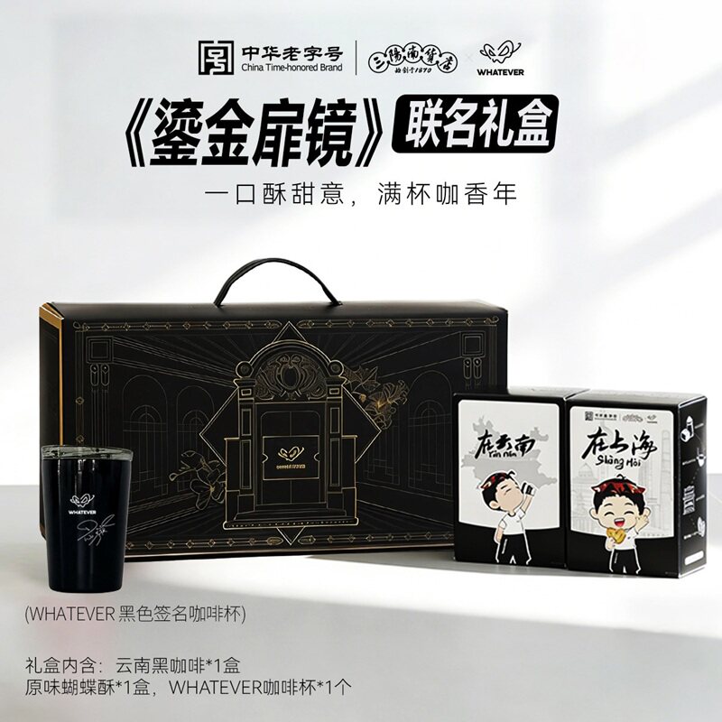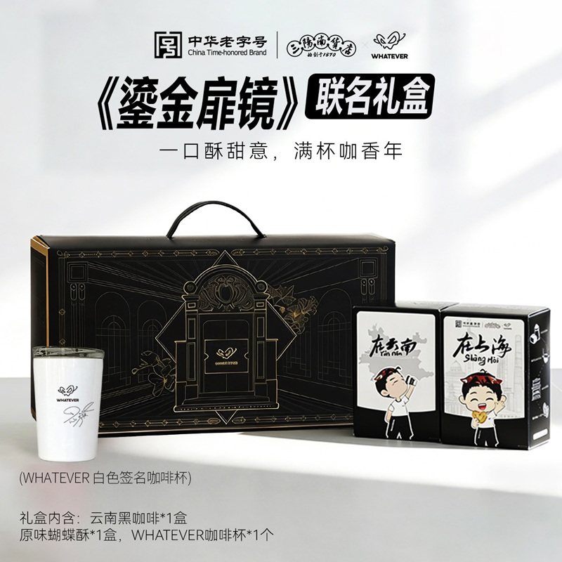 📚 三阳南货店&Whatever咖啡联名礼盒 蝴蝶酥黑咖啡明星签名咖啡杯