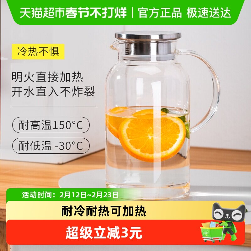 📚 青苹果耐热玻璃凉水壶大容量1只防爆家用冷水壶煮茶壶养生壶