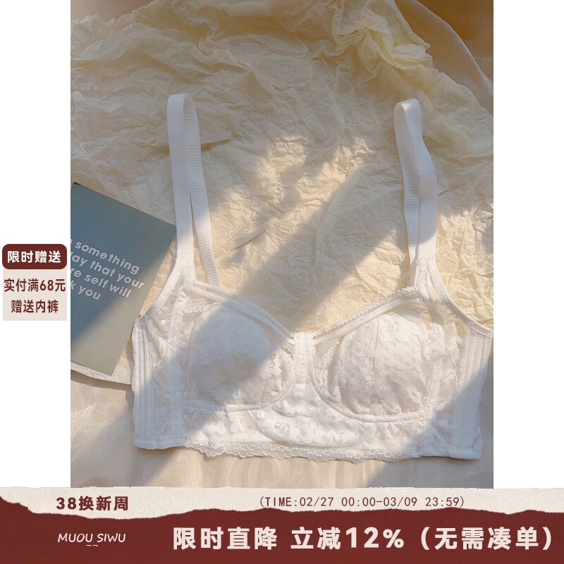 📚 月诗风吟 超薄性感蕾丝鱼骨内衣大胸显小收副乳调整型兔耳朵文胸