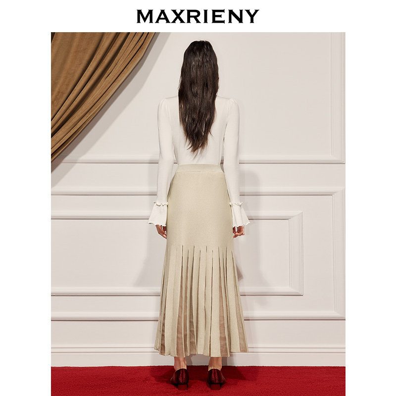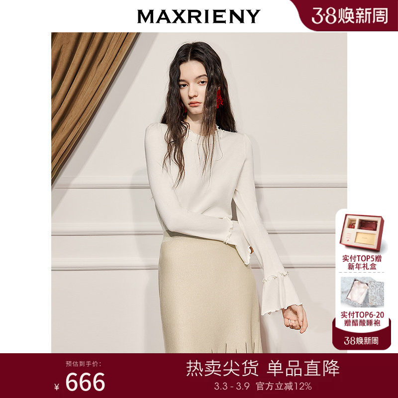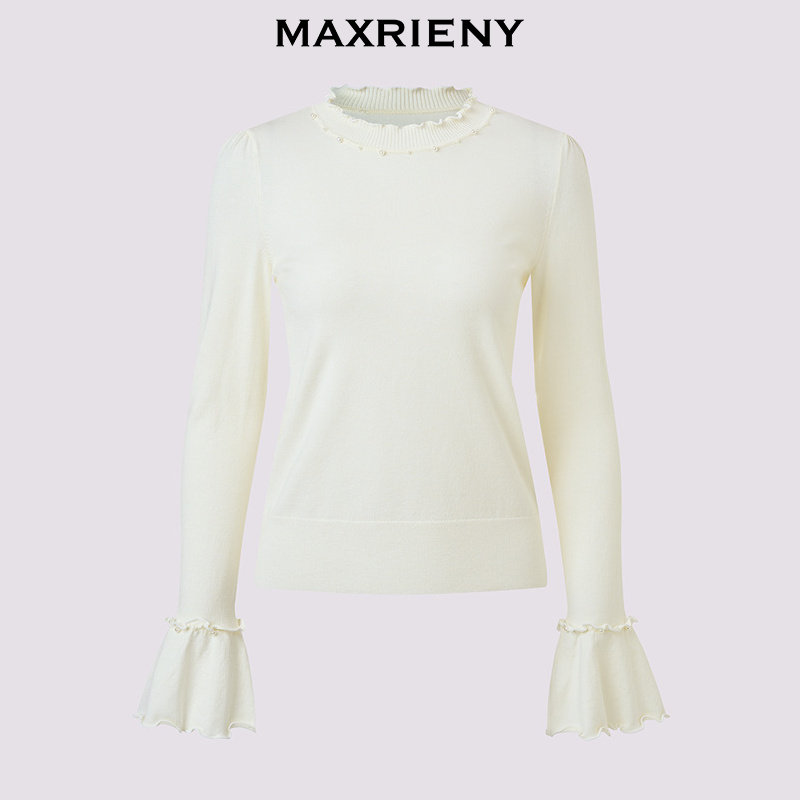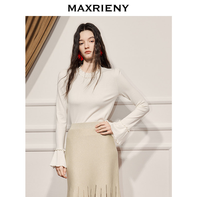 📚 MAXRIENY亲肤软糯喇叭袖修身打底毛衫25冬款长袖上衣冬日暖白穿搭