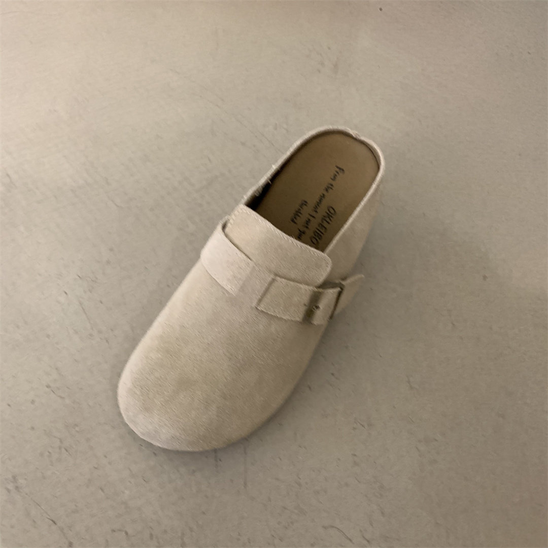 📚 7CM内增高厚底鞋勃肯鞋女夏季外穿复古丑萌真皮一脚蹬包头半拖鞋