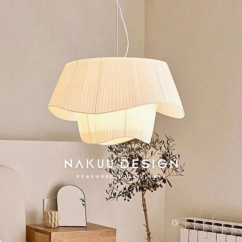 📚 法国中古吊灯真丝绸缎面奶白日式流线型简约卧室灯客厅主灯诧寂风