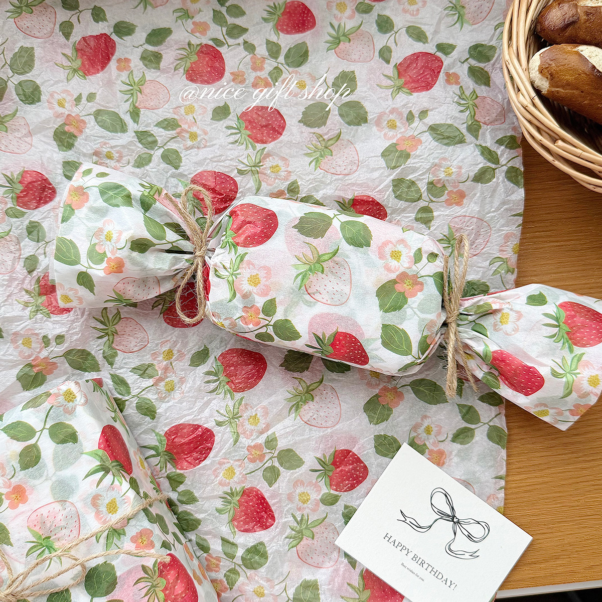 📚 ins高颜值草莓礼物包装纸小清新雪梨纸花束包装内衬纸diy打包材料