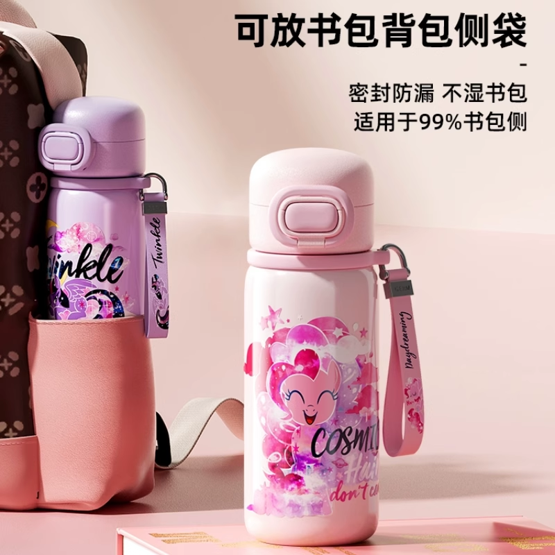 📚 小马宝莉联名保温杯学生上学专用水杯儿童吸管不锈钢拎带女生可爱
