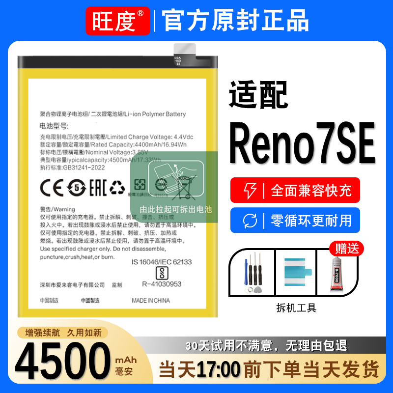 📚 适用OPPOReno7SE电池reno7se原装oppo正品PFCM00大容量内置BLP895