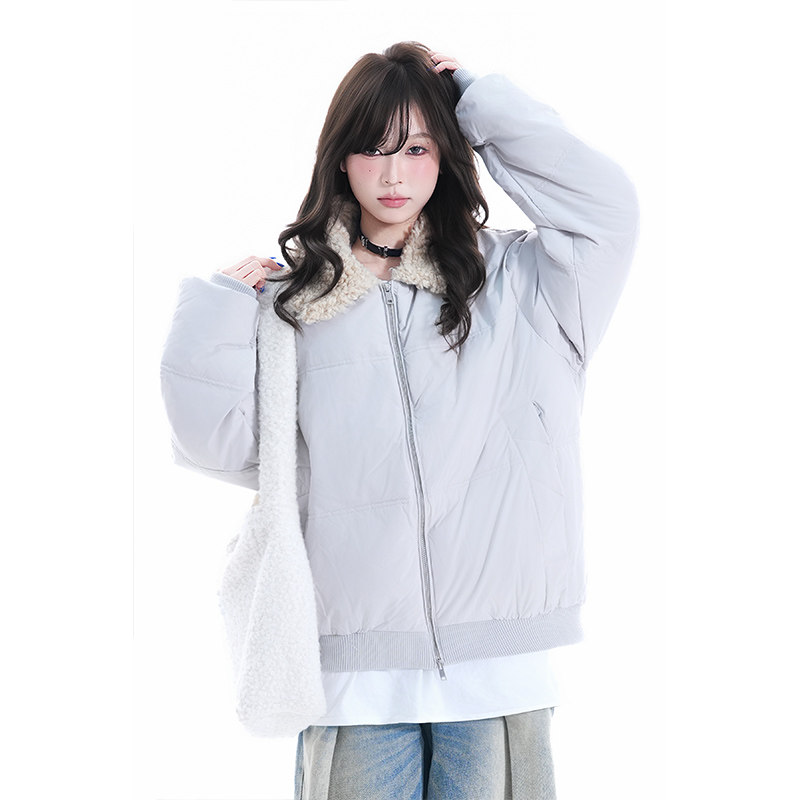📚 kk soul韩系冬季羊羔绒拼接翻领羽绒服潮牌90白鸭绒保暖情侣外套
