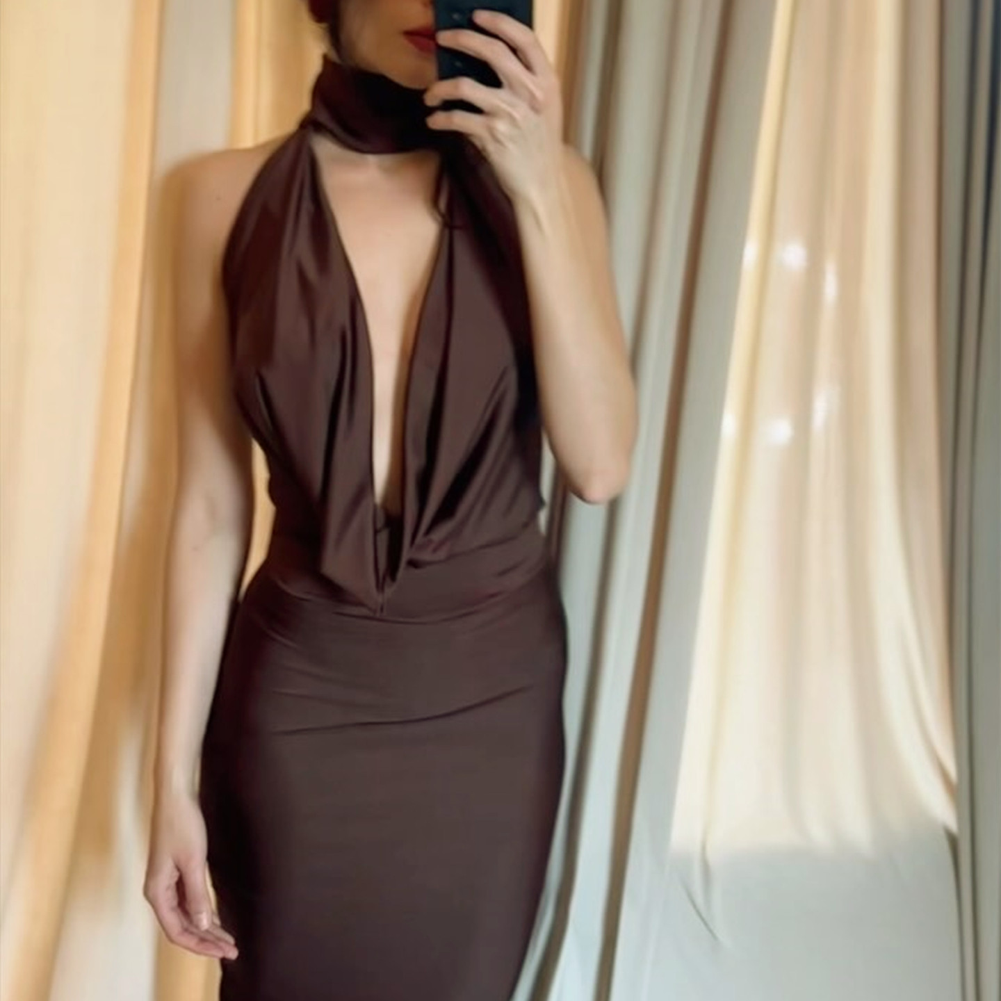 📚 高级感荡领气质修身连衣裙2026夏季新款宴会晚礼服性感露背长裙女